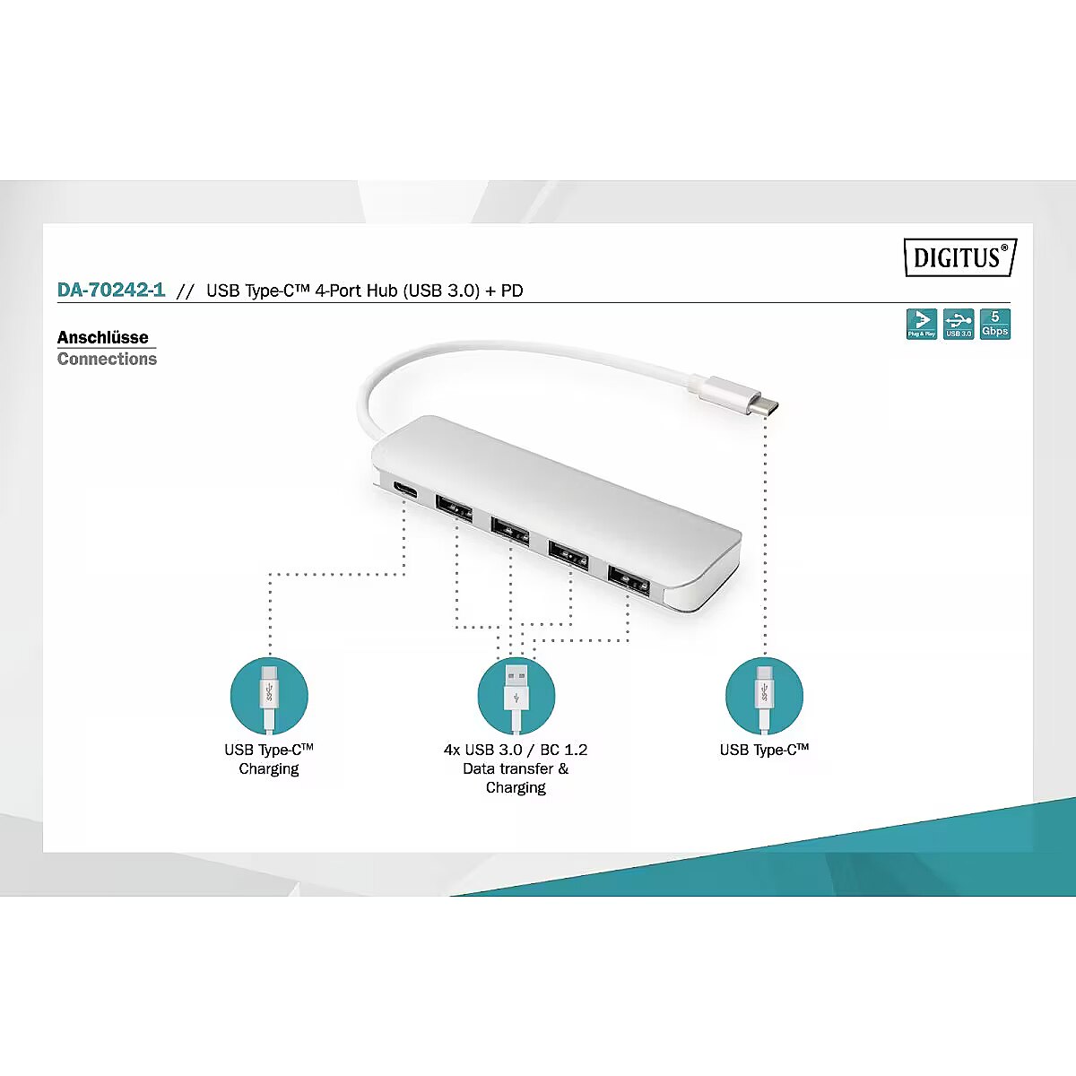 Name - Digitus USB Type-C 4-port hub (USB 3.0) + PD (silver)