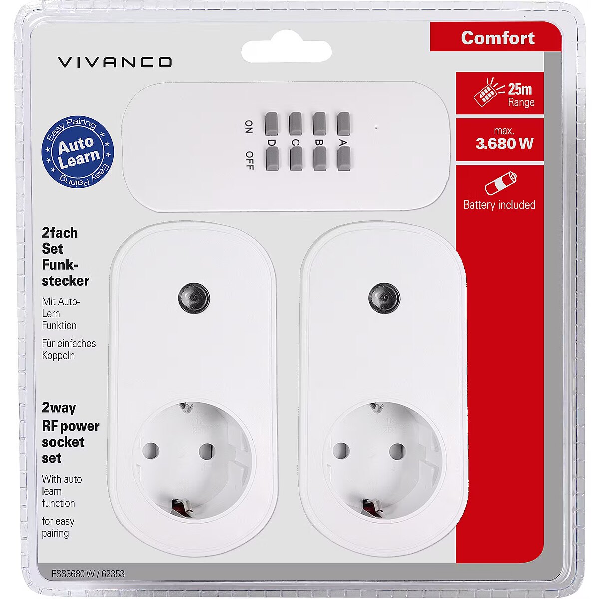 description_et - Vivanco pistikuga saad seadmeid mugavalt sisse/välja lülitada puldi kaudu. Komplektis on kaks pistikut Puldiga kontrollitav Tööraadius: 25 m Võimsus: kuni 3680 W