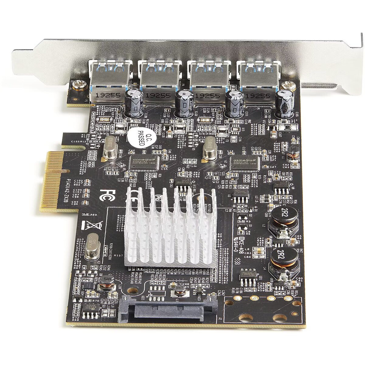 LongDesc - USB 3.2 Gen 2 (10 Gbps) | PCI-Express 3.0 | PCIe x4 Slot | USB Type-AThis PCIe USB 3.2 Gen 2 controller card installs into an available PCI-Express x4 slot in your computer and enables you to upgrade your current system by adding four SuperSpeed USB-A (10Gbps) ports. The card features dual ASM3142 controllers with up to 20 Gbps of total bandwidth shared across all 4 ports.Add Four 10 Gbps USB Type-A Ports to Your Desktop ComputerThe controller card enables you to connect four USB-A Gen 2 (10 Gbps) devices to your desktop computer. The USB-A ports are ideal for connecting USB devices such as external hard drives and solid state drives or powering and syncing your mobile devices. The USB-A ports provides up to 4.5W (5V/0.9A) of power per USB port, and are backward compatible with USB 3.2 Gen 1 (5 Gbps), and USB 2.0 (480 Mbsp) devices.Note: USB 3.2 Gen 2 (10 Gbps) is also know as USB 3.1 Gen 2 (10 Gbps), and USB 3.2 Gen 1 (5 Gbps) is also know as USB 3.1 Gen 1 and USB 3.0 (5 Gbps).SuperSpeed USB 3.2 Gen 2 (10 Gbps) PerformanceThe USB 3.2 Gen 2 card features dual ASMedia ASM3142 host controllers that utilizes x4 lanes of the PCIe 2.0 bus, making the card capable of speeds up to 10 Gbps on each port, and enabling fast access to high-performance devices like NVMe drives and SSDs. The controller cards support Multiple INs to reduce bandwidth loss when multiple devices are connected, even when connected through a USB Hub (Note: The USB hub must also support this feature). The card also supports UASP for improved performance with storage devices.Wide Installation CompatibilityThis add-on card includes a full-profile installation bracket ensuring you can install it into full-profile PCIe 2.0 x4 slots. For wide platform support the card is compatible with Windows, Linux and macOS. For hassle-free installation the drivers install automatically on computers running Windows 8 or higher. Works w/USB 3.2/3.0/2.0 devicesPEXUSB314A2V2 is backed by a StarTech.com lifetime warranty and free 24/5 multi-lingual North American based technical support. StarTech.com has been the IT professionals' choice for over 30 years.The StarTech.com Advantage