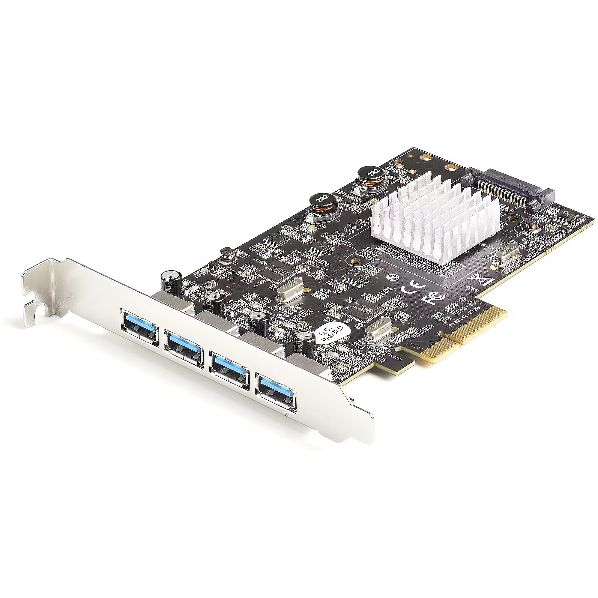 ShortSummaryDescription - StarTech.com 4-Port USB PCIe Card - 10Gbps USB 3.1/3.2 Gen 2 Type-A PCI Express Expansion Card with 2 Controllers - 4x USB-A - USB PCIe Add-On Adapter Card - Windows/Mac/Linux, PCIe, USB 3.2 Gen 2 (3.1 Gen 2), PCIe 3.0, SATA 15-pin, Black, Metallic, 40000 h