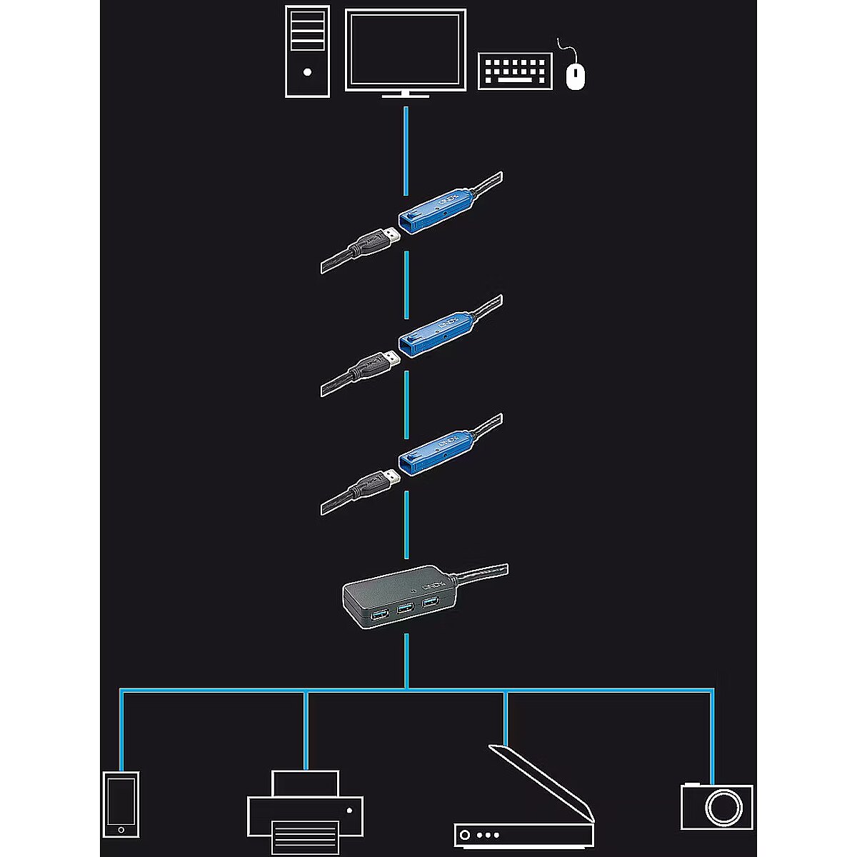Description - 10m USB 3.0 Active Extension Pro Hub Extend USB 3.0 connections up to 40m