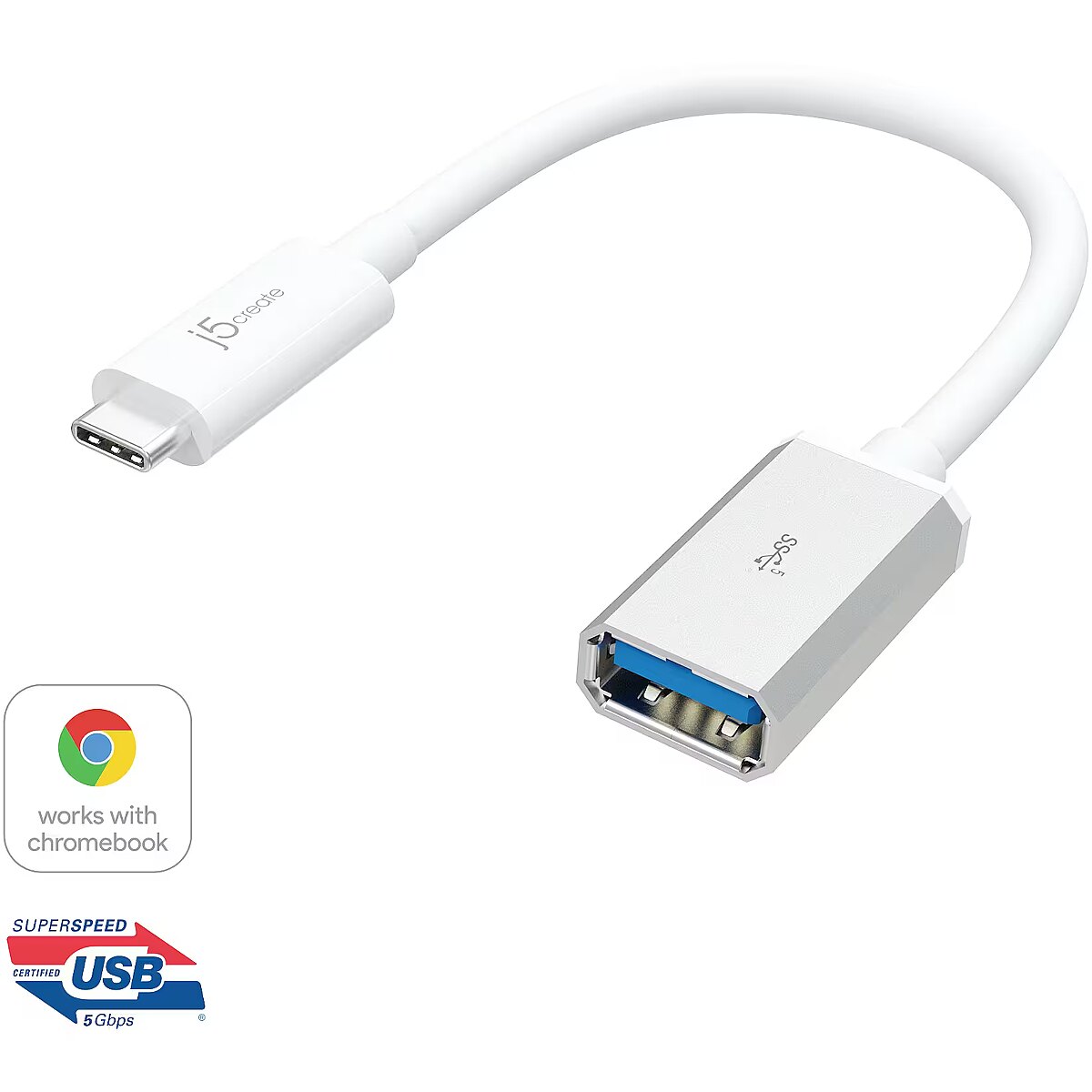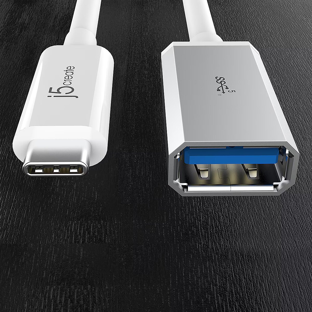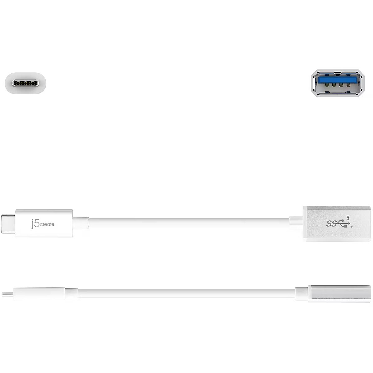 Title - j5create JUCX05 USB-C® 3.1 to USB™ Type-A Adapter, White and Silver