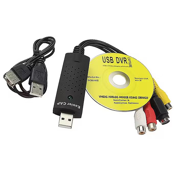 description_ru - USB 2.0 Easy Cap Адаптер видеозахвата для аналогового сигнала AV / RCA / S-VIDEO в форматах NTSC: 720x480@30 fps или PAL: 720x576@25 fps. Plug&Play карта определяется, как USB веб-камера и способна записывать видео и аудио сигнала через встроенное в Windows приложение "Камера". Максимальная проста в использовании - оцифруйте свои детские записи с VHS кассет прямо на компьютер. Технические характеристики: