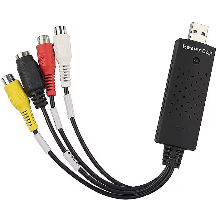 description_en - USB 2.0 Easy Cap Video capture adapter for analog AV / RCA / S-VIDEO signal in NTSC: 720x480@30 fps or PAL: 720x576@25 fps. The Plug&Play card is defined as a USB webcam and is capable of recording video and audio from the built-in "Camera" application in Windows. Maximum easy to use - digitize your children's records from VHS tapes directly to your computer.