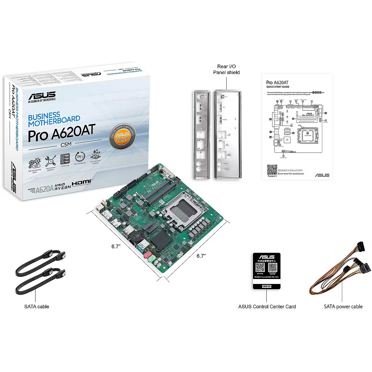 LongDesc - ASUS Pro business motherboards provide enhanced features to smooth your IT operations, including comprehensive system protection, 24/7 stability and reliability and an improved management suite for easier customization. Known as the world's biggest and best-known motherboard brand, ASUS provides world-class after-sales service and guaranteed long-term availability to maximize your investment over the product life cycle and offers a high-quality, TCO-optimized solution for your business computing-needs.ASUS Corporate Stable ModelASUS Corporate Stable Model (CSM) is a commercial program designed to provide stable and reliable motherboards. Offering up to 36-month product lifecycle support and 6-month end-of-life notice to allow sufficient lead times for your organization to get ready for product transitions. Each purchase of an ASUS CSM motherboard comes with ASUS Control Center Express - server-grade IT management software.ASUS Control Center ExpressASUS Control Center Express is a real-time IT monitoring and management tool designed for business that improves productivity and enhances security, helping prevent unauthorized access and data leaks. The intuitive dashboard enables easy, real-time hardware and software management across your organization. Purchase of a Pro motherboard entitles you to a copy of Control Center Express – a US$60Optimize IT endpoint managementDesigned to assist IT staff in monitoring and controlling devices within their corporate networks, and facilitate inventory checking in multiple locations remotelyAutomate IT maintenanceAllows IT staff to schedule automatic updates of the latest BIOS, software and utilities to specific or all devices at off-peak times, enhancing system stability and IT operational flexibilitySecurely manage all of endpointsSecurely manage endpoint configuration, portable storage access and PC software applications by enabling them to create grouping rules on individual devices* ASUS Control Center Express is only available for CSM motherboards. Please consult your local sales representative for more informationASUS ShieldEnhances system security from bottom to topASUS Self-recovering BIOSASUS-exclusive BIOS protection technology automatically recovers the system BIOS with a verified backup in the event of an update failure, preventing the need to replace or reinstall hardware.Trusted Platform Module(TPM)Hardware-based security offers better data protection, enhances network security, protects digital identities and ensures platform integrity.Certified NIST SP 800-147ASUS Business motherboard is certified by the national computer security standards.ASUS Secure BootASUS business motherboard is set to check the firmware and signature of each piece of boot software.ASUS Self-recovering BIOSWith ASUS Self-recovering BIOSThe user simply needs to reboot the system and ASUS Self-recovering BIOS will restore the latest BIOS update.ASUS ReliantEnsures consistent performance with the finest components and rigorous reliability testingAnti-moisture CoatingProtection against moisture and corrosionAn innovative moisture-resistant coating protects the motherboard in humid environments, such as factories, libraries, data centers and internet cafes. It also minimizes internal corrosion by preventing adhesion and migration of moisture, prolonging the life of the motherboard.Anti-sulfur ResistorsConsider long-term reliability of commercial product, ASUS Business motherboard is equipped with anti-sulfur resistors. The resistors provide excellent resistance to sulfuration by constructed in a high grade ceramic body (aluminum oxide). With anti-sulfur resistors, ASUS Business motherboard can be operated under the harsh environments.Stainless-Steel Back I/O3X corrosion-resistance for greater durabilityCorrosion-resistant stainless steel back I/O panels bonded with chromium oxide have a lifespan that's three times longer than ordinary panels.Overvoltage ProtectionWorld-class circuit-protecting power designAn exclusive circuit design with built-in voltage regulators to protect your chipset, connectivity ports, and audio codecs from damage caused by unexpected high-level voltages from unstable or inferior power supplies.ESD GuardsElectrostatic discharge protectionASUS ESD Guards prevent damage from electrostatic discharge, up to +/- 10kV for air discharge and +/-15kV for contact discharge, arranged in an active-protective-circuit design that prolongs the life of components.LANGuardPumped-up throughput. 2.5X higher surge tolerance.ASUS LANGuard is hardware-level networking protection that employs signal-coupling technology and premium anti-EMI surface-mounted capacitors ensuring a more reliable connection and better throughput, plus electrostatically guarded and surge-protected components for greater tolerance to static electricity and improved protection against surges.24/7 Reliability TestOptimized for twenty-four seven operations, the motherboard is tested under temperature up to 45°C and relative humidity up to 80% to ensure it can handle diverse temperature and humidity range of different location.ASUS Commercial BIOS KitASUS understands how important a customized product impacts users' mind share, experience the brand new Commercial BIOS Kit for partial BIOS update solution!DASH support ReadyDASH(Desktop and mobile Architecture for System Hardware) is a suite of specifications developed by the DMTF that delivers open standards-based Web services management for desktop and mobile client systems. DASH is a comprehensive framework that provides the next generation of standards for secure out-of-band and remote management of desktop and mobile systems in multi-vendor, distributed enterprise environments. DASH enables robust, secure out-of-band management.* Pro A620AT-CSM is hardware ready for capable of DASH software. DASH software is not attached with product.ASUS ServiceabilityFacilitate the assembly process and enable efficient troubleshootingQ-LED Co