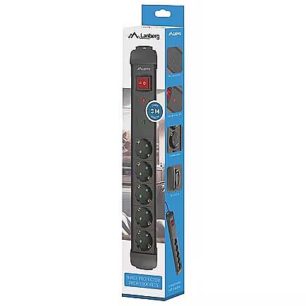 ShortDescription - Listwa zabezpieczająca Lanberg SP1 5 gniazd Schuko 3m czarna