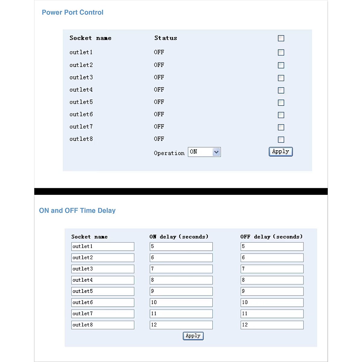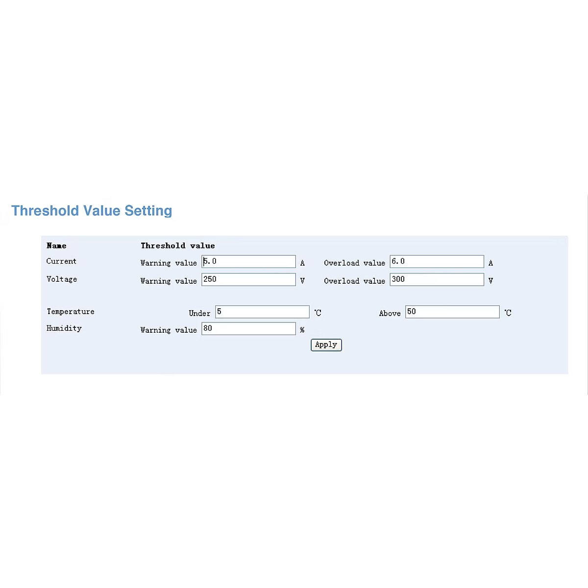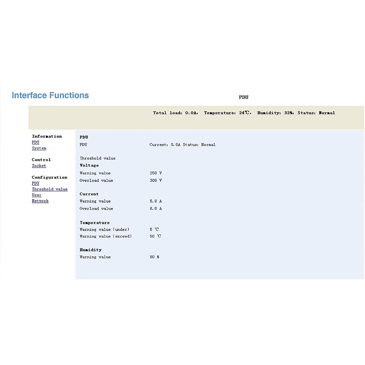 Management features - Monitoring - Current, Humidity, Temperature, Voltage