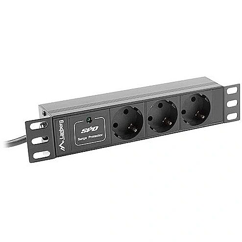 ShortDescription - Listwa zabezpieczająca Lanberg Rack PDU 10" 3 gniazda Schuko 2.0m 1U 16A czarna