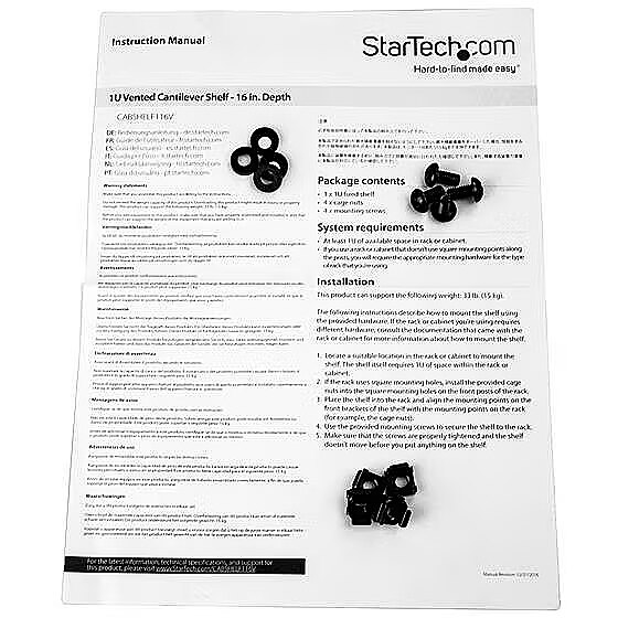 LongProductName - StarTech.com 1U Server Rack Shelf - Universal Vented Rack Mount Cantilever Tray for 19" Network Equipment Rack & Cabinet - Heavy Duty Steel - Weight Capacity 44lb/20kg - 16" Deep Shelf (CABSHELF116V)