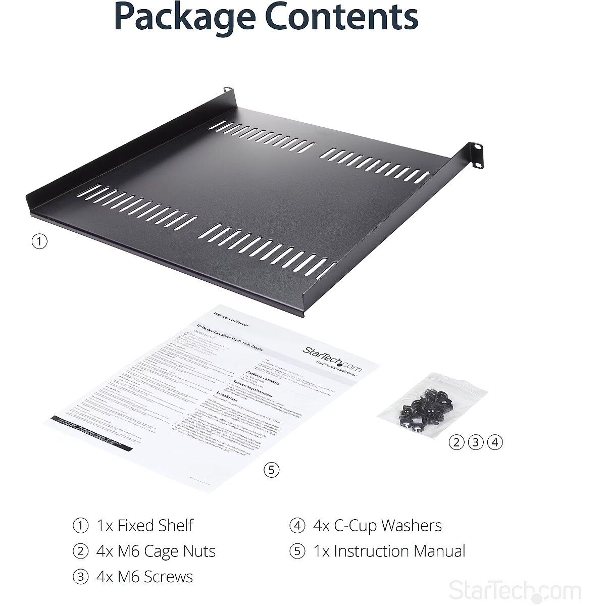 Title - StarTech.com 1U Server Rack Shelf - Universal Vented Rack Mount Cantilever Tray for 19" Network Equipment Rack & Cabinet - Heavy Duty Steel – Weight Capacity 44lb/20kg - 16" Deep Shelf, Black