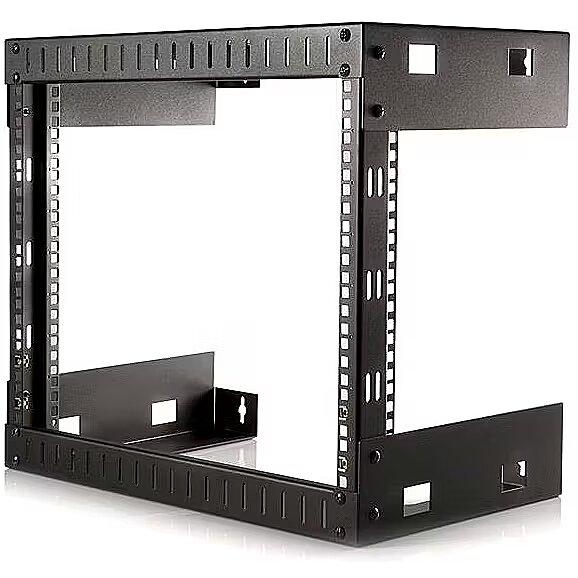 LongDesc - Mount your server or networking equipment using this 8U wall mount rackThe RK812WALLO 8U Open Frame Wall Mount Equipment Rack (12in Depth) is a high quality, low cost relay rack that is easy to assemble and install into any environment. The rack can be wallmounted or installed as a free standing storage solution. This TAA compliant product adheres to the requirements of the US Federal Trade Agreements Act (TAA), allowing government GSA Schedule purchases.Able to accommodate common networking, audio-video and telecom equipment, the open rack offers a depth of 12in; the wall mounts are positioned 16in apart (center to center), making it suitable for mounting on virtually any wall surface, based on North American wall frame stud spacing standards.This 8U rack can be mounted to the wall in a server room, office, or above a doorway, expanding your workspace and keeping your equipment easily accessible.Backed by a StarTech.com lifetime warranty.The StarTech.com Advantage