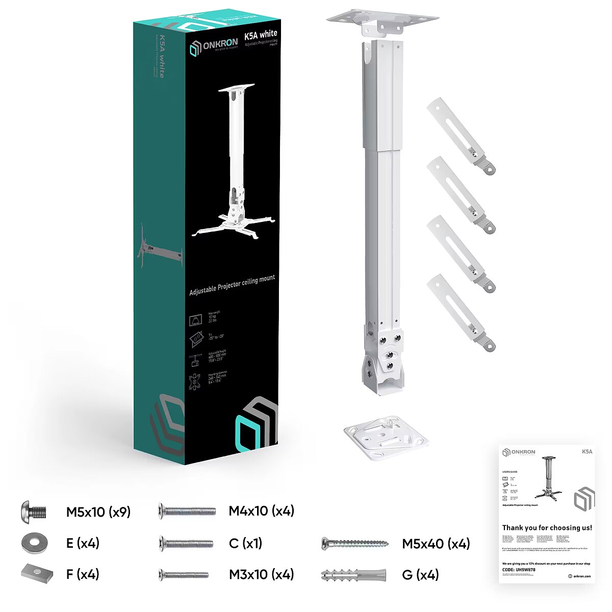 Vendor Homepage - onkron-uk.co.uk/products/onkron-universal-ceiling-projector-mount-height-adjustable-375-573-mm-from-ceiling-k5a?_pos=1&_sid=5b91574a5&_ss=r