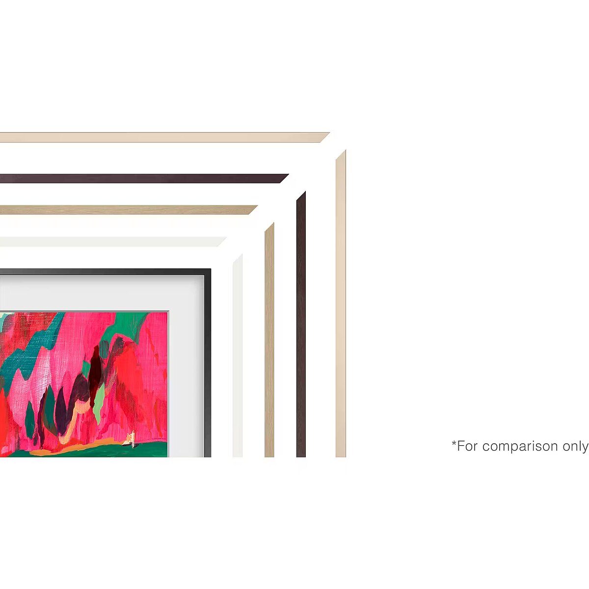 LongDesc - More colours, more styles, more youCustomisable BezelDesigned to look just like the edges of a picture frame, it's never been easier to customise The Frame TV to work with your taste, space or simply the artwork on display.Choose your own colour and designCustomise the bezel to your needs with various styling options. Select your preferred colour among White, Teak, Brown and Sand Gold. Then pick the design of your choice, Modern or Bevelled.An effortless way to get a brand new lookIts easy to swap the bezel whenever you fancy a change - all it takes is a snap to switch things up. They attach to The Frame magnetically, so it's easier than you'd expect - simply line them up and snap them on.