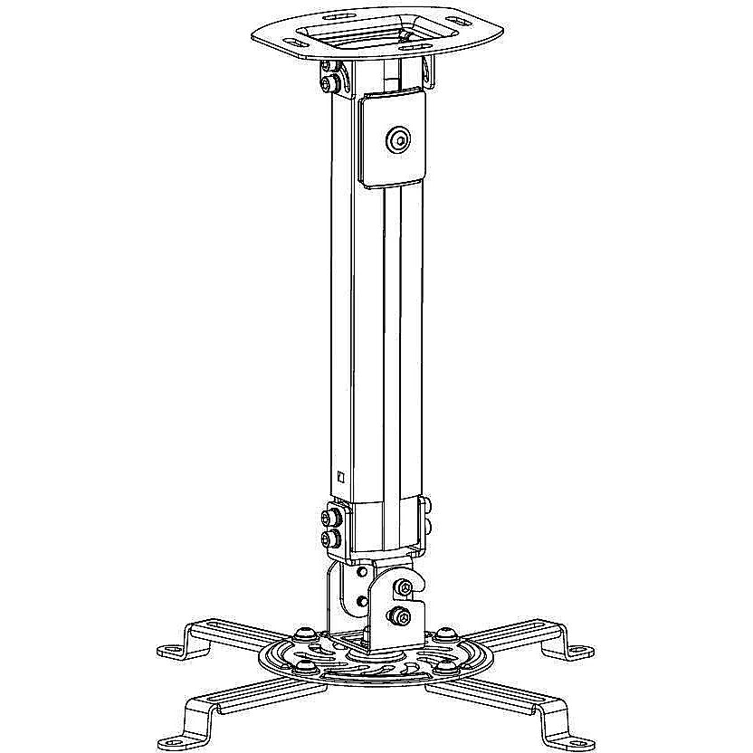 LongDesc - ICA PM-18M is a universal projector ceiling mount up to 13.5kg. The inclination of the mounting plate adapts to applications on both ceiling and floor that sloped. Provides a multidirectional positioning with four adjustable support arms that can adapt to a wide range of mounting holes. The cables required for assembly are run inside of the central column and therefore are not visible. The QD allows you to install the projector quickly and it may be released easily for maintenance. The column aluminum retractable allows adjustment to different heights. This support for video projector is perfect for use in classrooms, meeting rooms, hotels, bars and restaurants, and more.Features- Universal bracket ceiling projector- Suitable for both flat ceiling that sloped- Compatible with most projectors on the market- Maximum weight supported: 13.5 kg