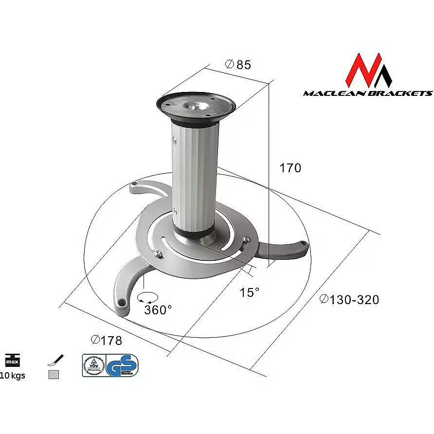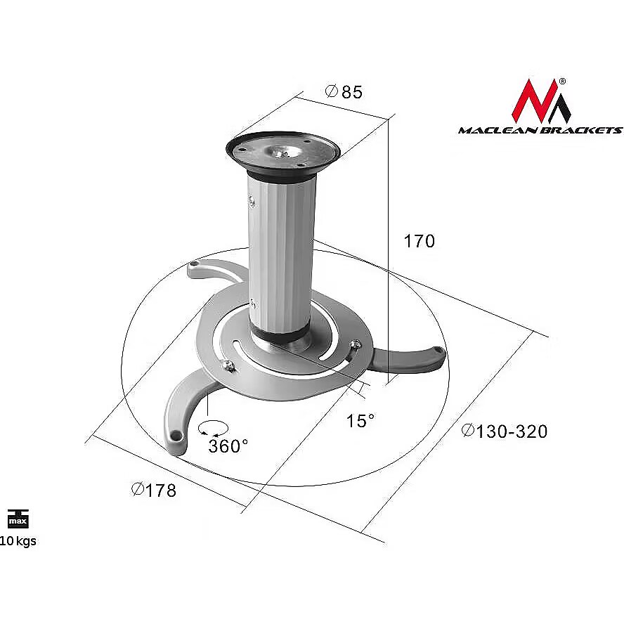 name - Ceiling mount for a projector. Maclean MC-515 S 80-170mm 10kg