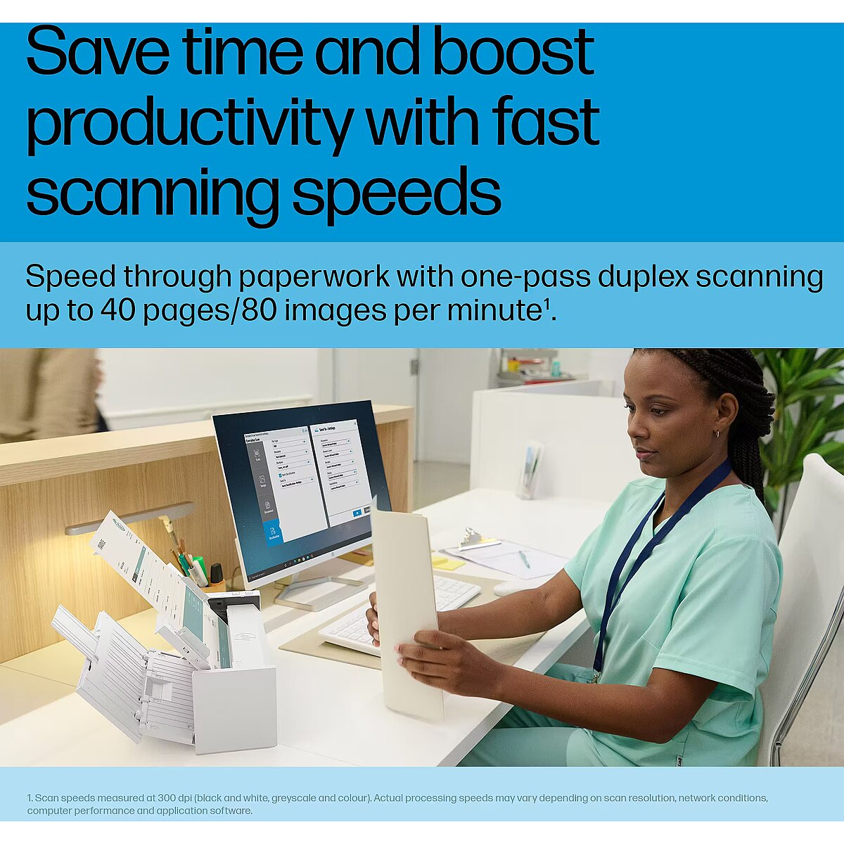 Scanning - Scan speed (colour, high res, A4) - 9 sec/page