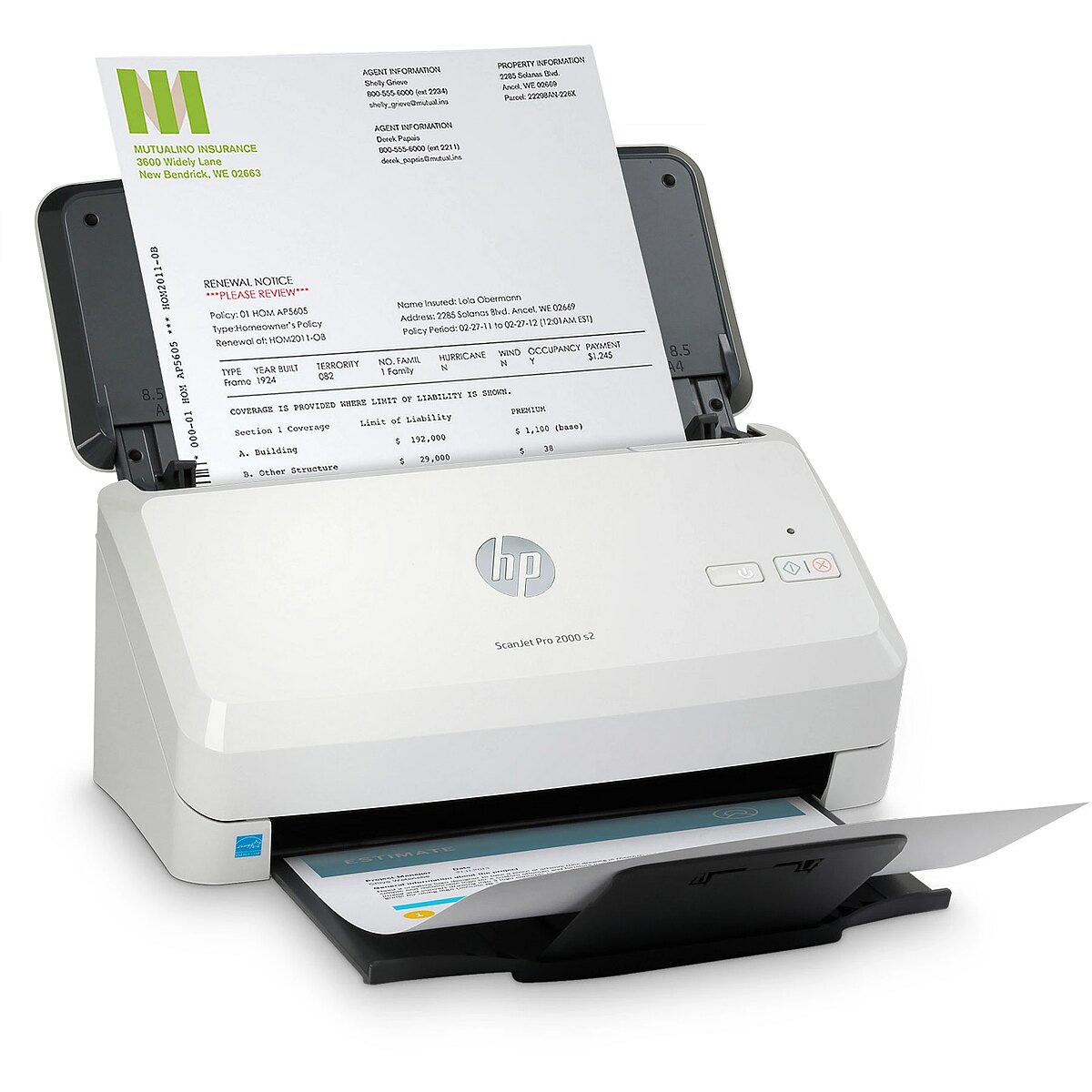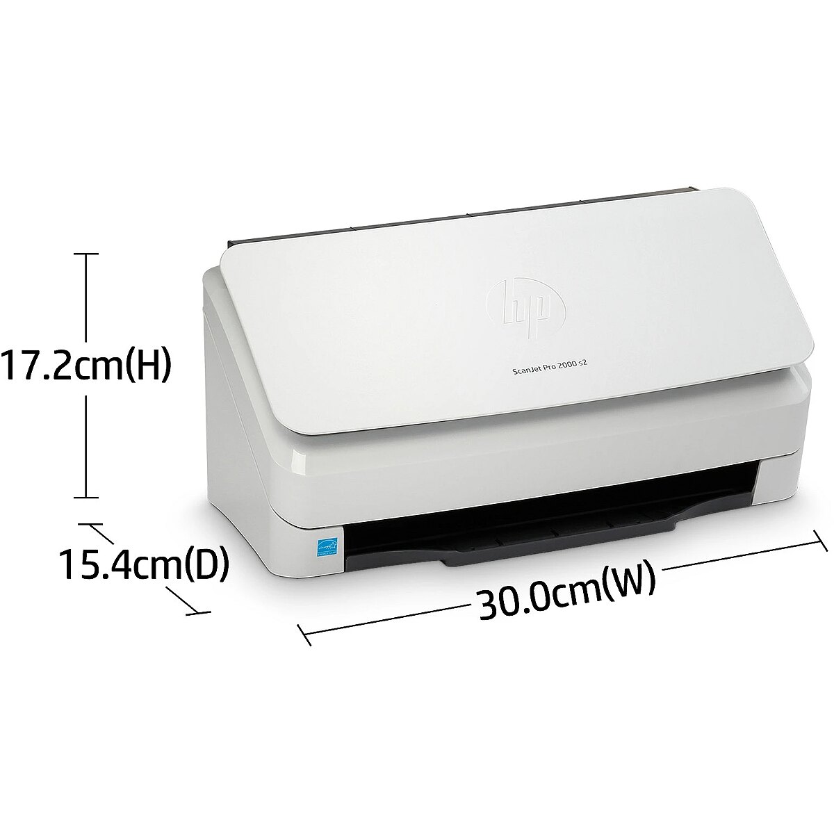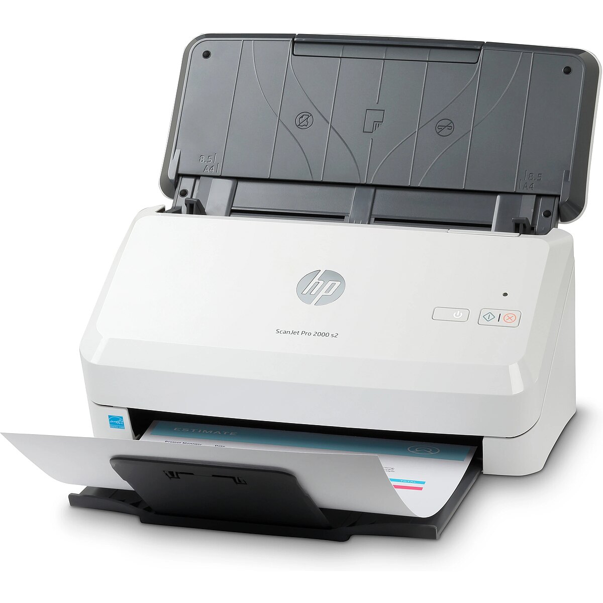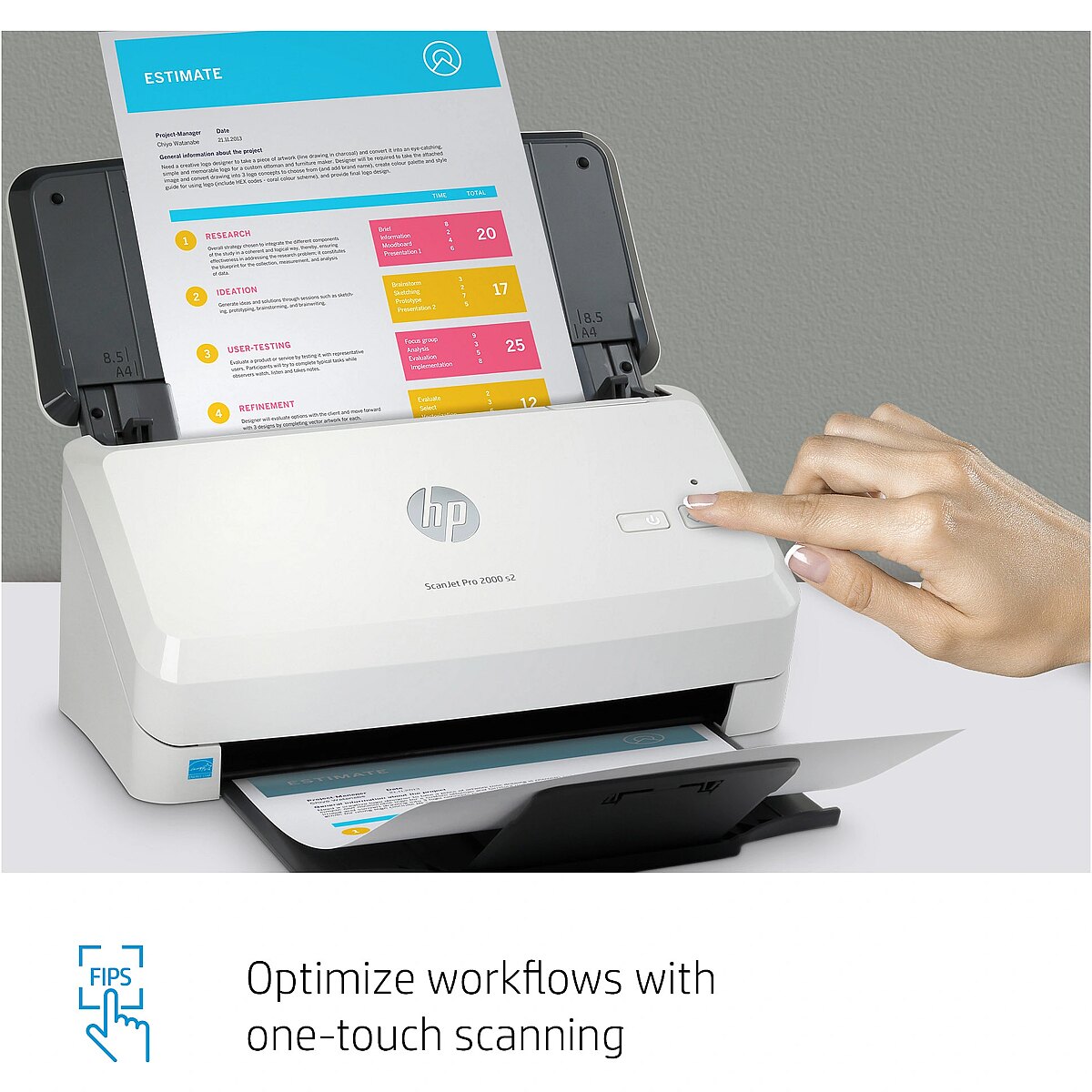 LongSummaryDescription - HP Scanjet Pro 2000 s2 Sheet-feed Scanner. Maximum scan size: 216 x 3100 mm, Optical scanning resolution: 600 x 600 DPI, Daily battery life: 3500 pages. Scanner type: Sheet-fed scanner, Product colour: Black, White. Sensor type: CMOS CIS, Daily duty cycle (max): 3000 pages, Button functions: Grayscale scan. Auto document feeder (ADF) input capacity: 50 sheets. Maximum ISO A-series paper size: A4