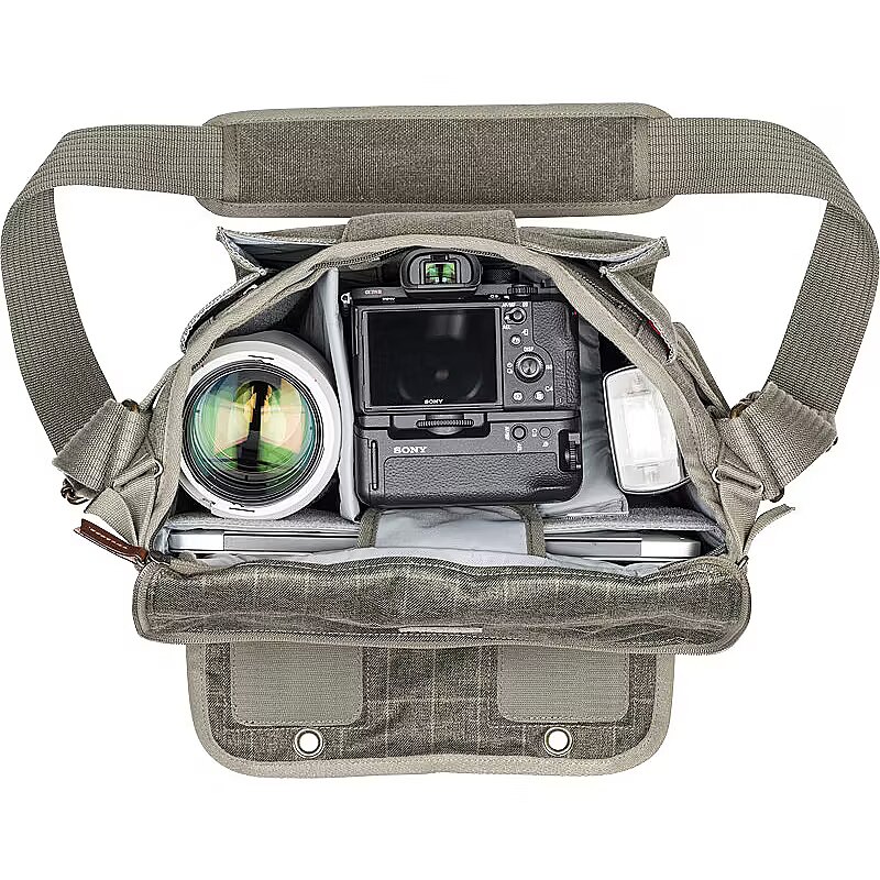 description_en - The Retrospective 10 V2.0 shoulder bag retains that classic look but includes many innovative new features. Keeping the soft, form-fitting design, they are lighter than the original. For greater security, we added a zippered opening under the main flap that tucks away when not in use. Soft and form-fitting with minimalist outer appearance Zippered opening to main compartment tucks-away when not in use Dedicated pockets fit a 10" tablet and 12" laptop Luggage handle pass-through Collapsible water bottle pocket Hook-and-loop “Sound Silencers” offer discretion when needed Webbing rail to accommodate modular pouches or carabineer Additional dividers to sub-divide compartments for smaller lenses Front pocket fits a 10” tablet Organizer pocket Wide storage pocket on back Removable carrying handle Zippered pocket for valuables and small items Adjustable shoulder strap with cushioned non-slip pad Seam-sealed rain cover included What fits in this bag? Gripped DSLR 10” tablet 12” laptop 24–70mm f/2.8 attached 70–200mm f/2.8 unattached Flash Example: Nikon D5 attached to 24–70mm f/2.8, 70–200mm f/2.8 unattached, SB-5000 AF Speedlight