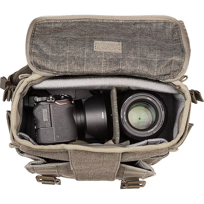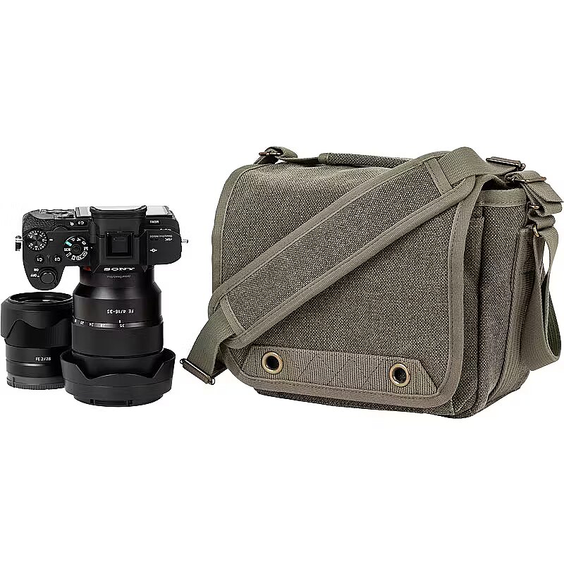 description_en - As part of Retrospective V2.0 shoulder bag series, the Retrospective 4 is sized for Rangefinder and Mirrorless camera systems such as Leica, Sony and Fujifilm. The bag also fits compact DSLR bodies like the Canon 80D and Nikon D750. With its classic canvas look, this soft, form-fitting bag offers the essential Retrospective V2.0 features, including sound silencers, padded shoulder strap, customizable dividers (with smartphone pocket) and metal hardware. Travel and street photographers will appreciate the Retrospective 4 for its compact size, discreet look and the undisputed Think Tank quality. Soft and form-fitting with minimalist outer appearance DWR treated 100% cotton canvas exterior with metal hardware Hook-and-loop “Sound Silencers” offer discretion when needed Zippered pocket for valuables and small items Expandable front pocket Additional dividers to subdivide compartments for smaller lenses Interior divider with phone and SD card pockets Wide storage pocket on back Removable carrying handle Adjustable shoulder strap with cushioned non-slip pad Seam-sealed rain cover included What fits in this bag? Standard DSLR body Mirrorless System 24–70mm f/2.8 detached Example 1: Nikon D750 with 50mm f/1.8 attached and a 35mm f/1.8 Example 2: Canon 5D with 18–135mm f/3.5-5.6 attached and an 85mm f/1.8 Example 3: Sony a7rII with 24–70mm f/4 attached, 16-35mm f/4 and a 55mm f/1.8 Example 4: Fujifilm X-T3 with 56mm f/1.2 attached, 16mm f/1.4, 23mm f/1.4