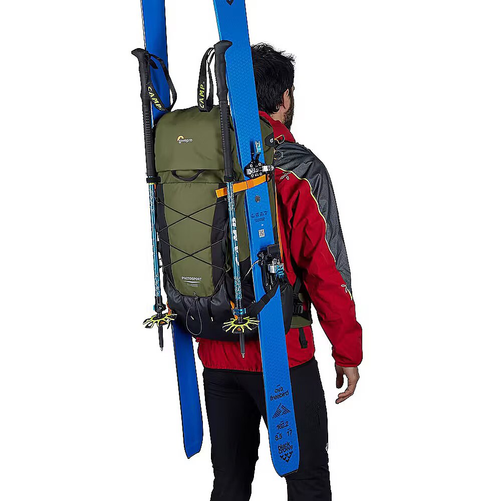 description_en - High-performing outdoor camera backpack for intense outdoor photo and video assignments Perfect fit with GearUP Pro Camera Box L, XL and XXL Extra lightweight & made with 84% recycled fabric Functional back access to removable GearUp camera insert Features Medium/Large shoulder straps and ActivLift™ harness Mountaineering specific harness system & dedicated features The new Lowepro PhotoSport X 45L Backpack is built for professional photographers and videographers who need a superior lightweight, performing bag that perfectly suits their gear and is capable of withstanding extreme outdoor conditions. Perfectly designed to match daily and overnight photography and videography intense missions, it has been developed to face the most demanding professional assignments in mountaineering environments. Since X stands for cross-functionality, the Photosport X is the best performing outdoor camera backpack of the range and it has been designed not only to be the best sports camera backpack for skiing but to cover all the activities practised in the mountains all year-long - From mountaineering to ice climbing, from overnight via ferrata to ski touring, the new X series is equipped with plenty of features dedicated to easily carry ice axes, ropes, climbing equipment, skis, a helmet plus all the key mountaineering essentials to achieve the mission. No compromises for the long haul with the ActivLift™ harness system with torso length adjustment – built to provide a comfortable fit and weight distribution for optimal mountaineering activities. The new Photosport X outdoor camera bag is equipped with a new suspended insert connection which gives better protection and stabilisation for GearUp Inserts - compatible with both GearUP Camera Box L, XL and XXL, the Photosport X range is not provided with a camera insert in order to leave up to the professionals the maximum freedom of choice depending on the assignment Built rugged and made of 84% recycled fabrics and it includes All Weather AW Cover™ to protect gear from rain, snow and dust.