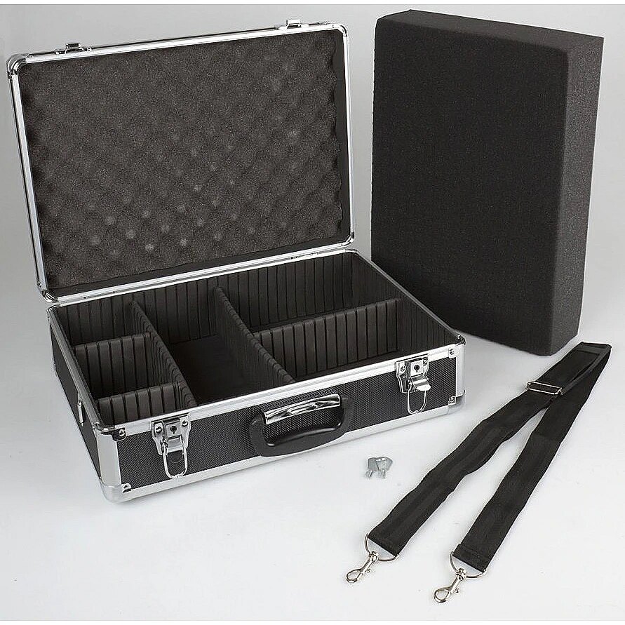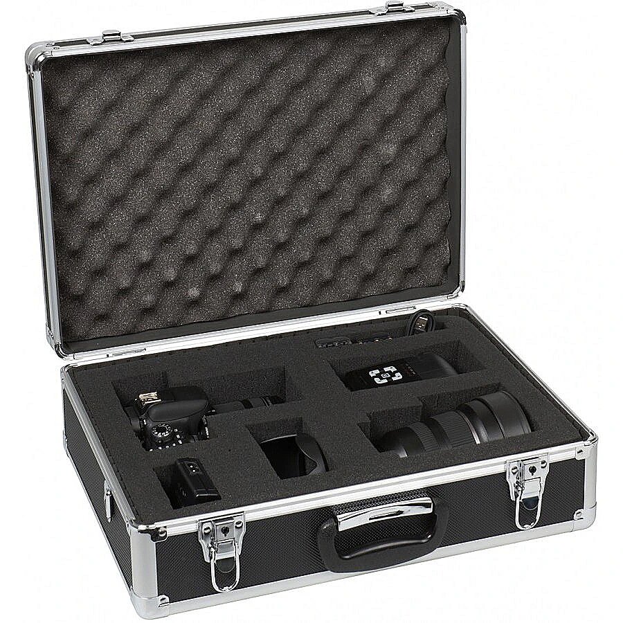 description_en - In this sturdy photo case, you always know your camera equipment is well protected. The stable outer walls in combination with the precisely fitting foam insert keep bumps away from the sensitive contents. Well closed with two locks, no unauthorized person can access the equipment. The cube perforated insert can be individually cut out. If the case is to serve as a means of transport for further accessories, the five partitions can also be used instead. For comfortable carrying, the enclosed shoulder strap can be used.