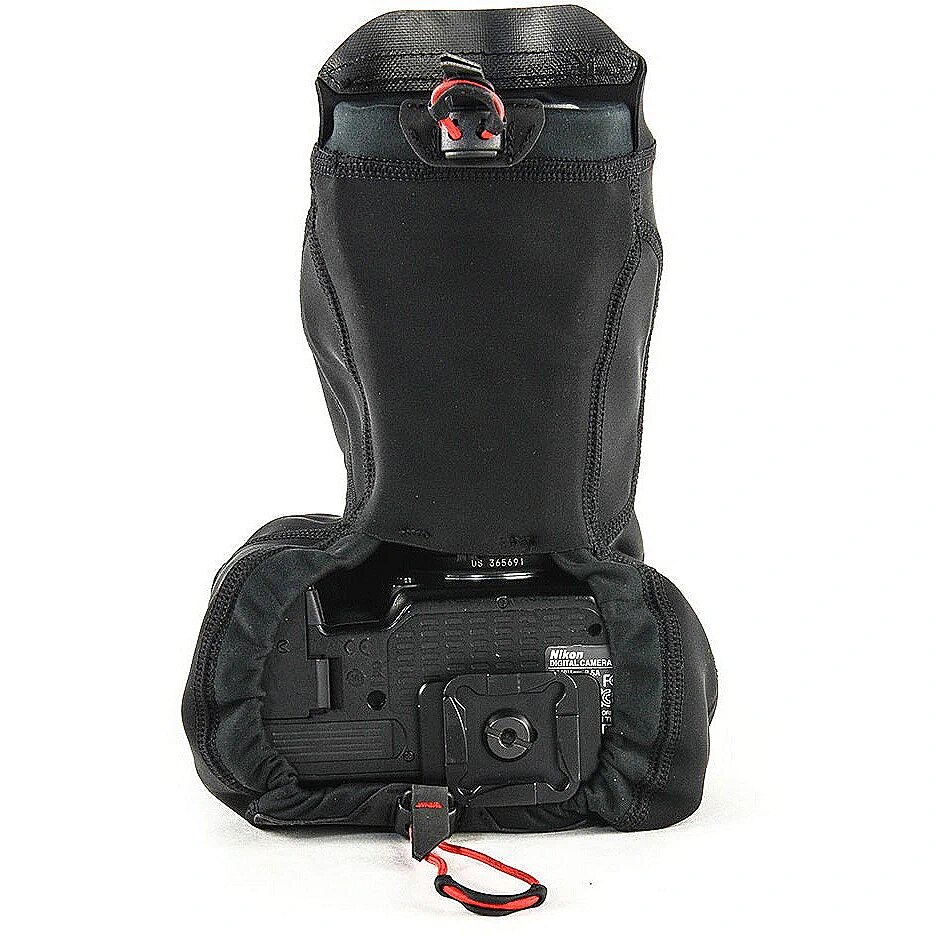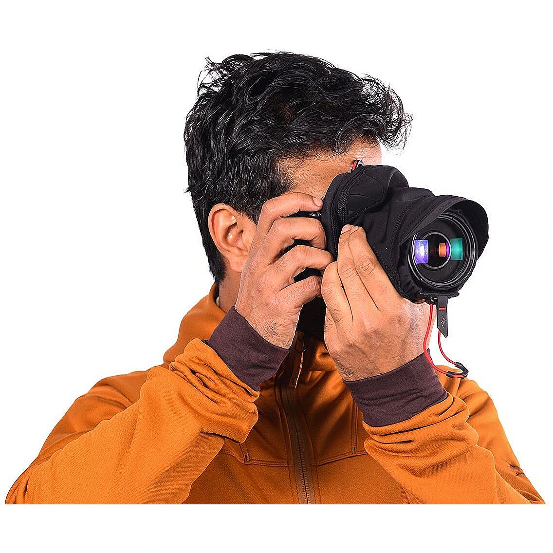 description_en - Protect your camera from water, snow, dust and abrasion, whether it’s in your hands, on the tripod, on your backpack or in your bag. Shell’s unique form-fitting design uses stretchy fabric with a waterproof membrane to keep your camera safe without adding bulk or impeding your workflow. Size S Shell is perfect for a mirrorless camera with any lens or a DSLR with a Kit lens.