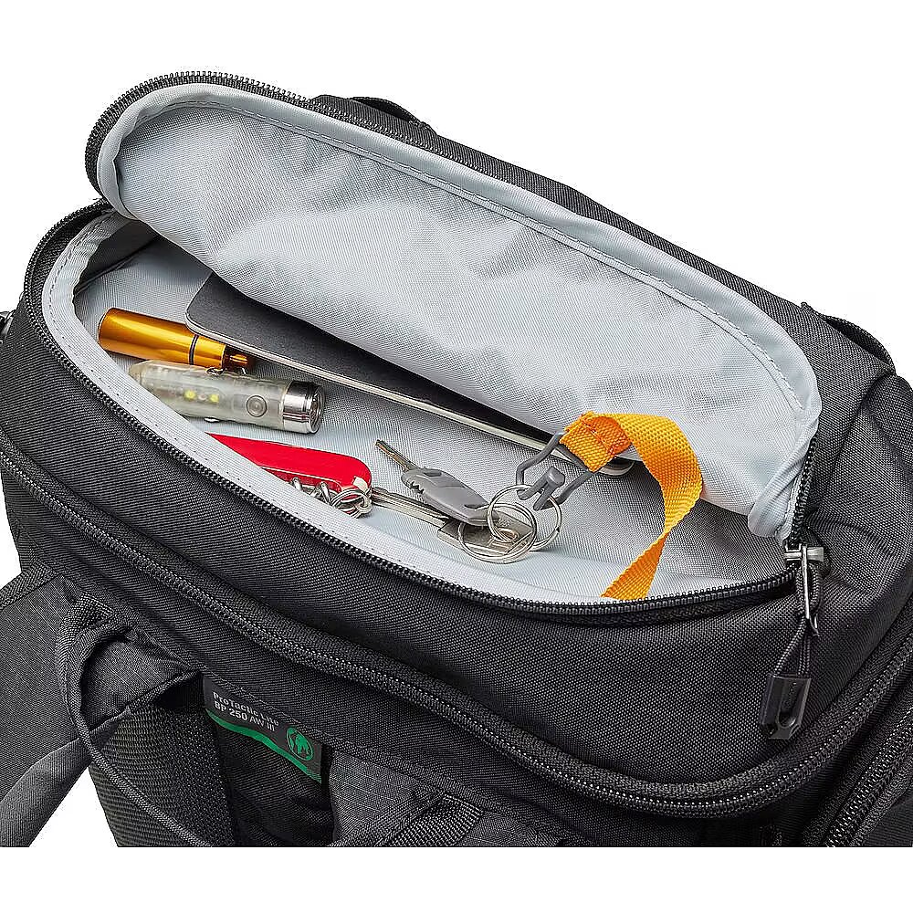 ProTactic Lite BP 250 AW III имеет большую боковую дверь, обеспечивающую полный доступ внутрь, включая мягкий карман для ноутбука CradleFit™, в который можно положить MacBook Pro с диагональю до 16 дюймов. Сумка спроектирована так, чтобы ее можно было дополнить внутренними карманами и органайзерами, такими как GearUp или ProTactic Lite SLX. Регулируемый по вертикали разделитель обеспечивает настраиваемую организацию, а верхний карман с ремешком для ключей обеспечивает быстрый доступ к самым необходимым вещам. Комфорт и долговечность