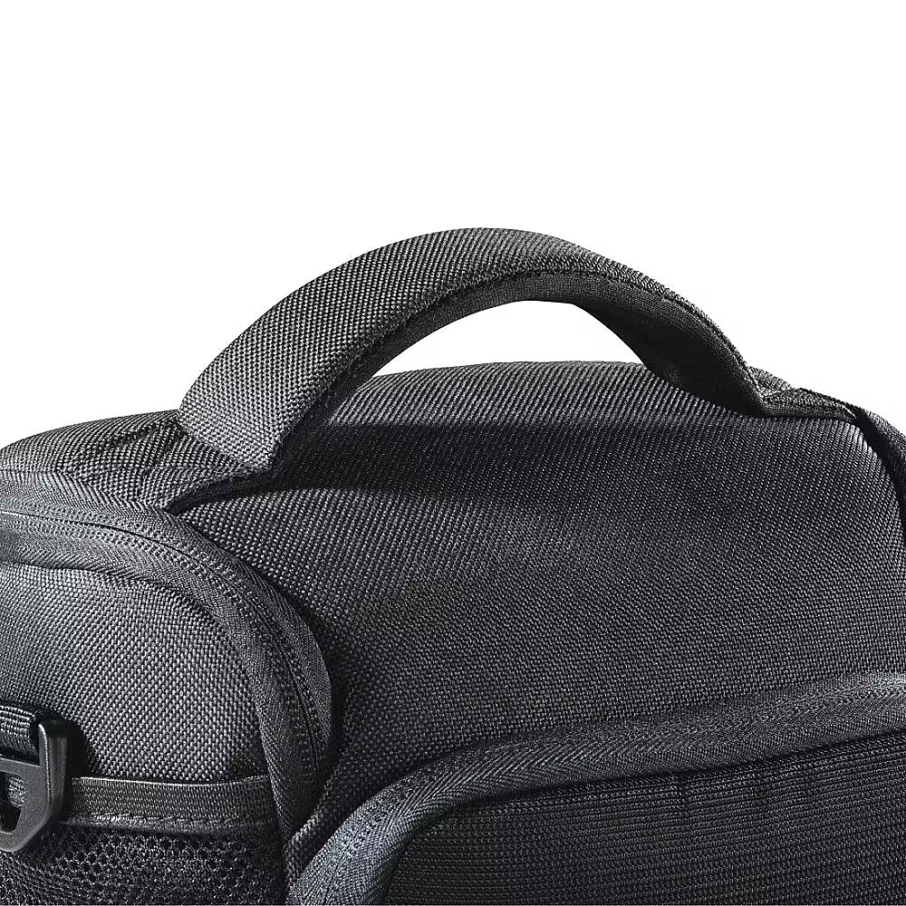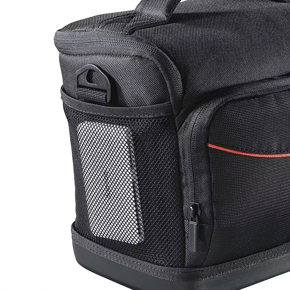 Description - Torba na sprzęt do przechowywania i ochrony przed zabrudzeniami i zadrapaniami kamery z akcesoriami Główny otwór z dwukierunkowym zamkiem błyskawicznym Zapinana na zamek przednia kieszeń na akcesoria, takie jak kable, karty pamięci i baterie Siatkowe kieszenie boczne Szlufka na pasek dla większego komfortu noszenia Wyściełany uchwyt Regulowany, odpinany pasek na ramię Regulowana wewnętrzna przegroda zapewniająca przejrzystą organizację Stabilna podstawa torby wykonana z wytrzymałego i sprężystego materiału EVA