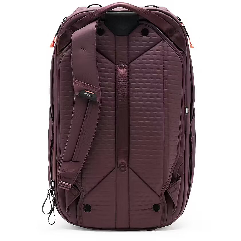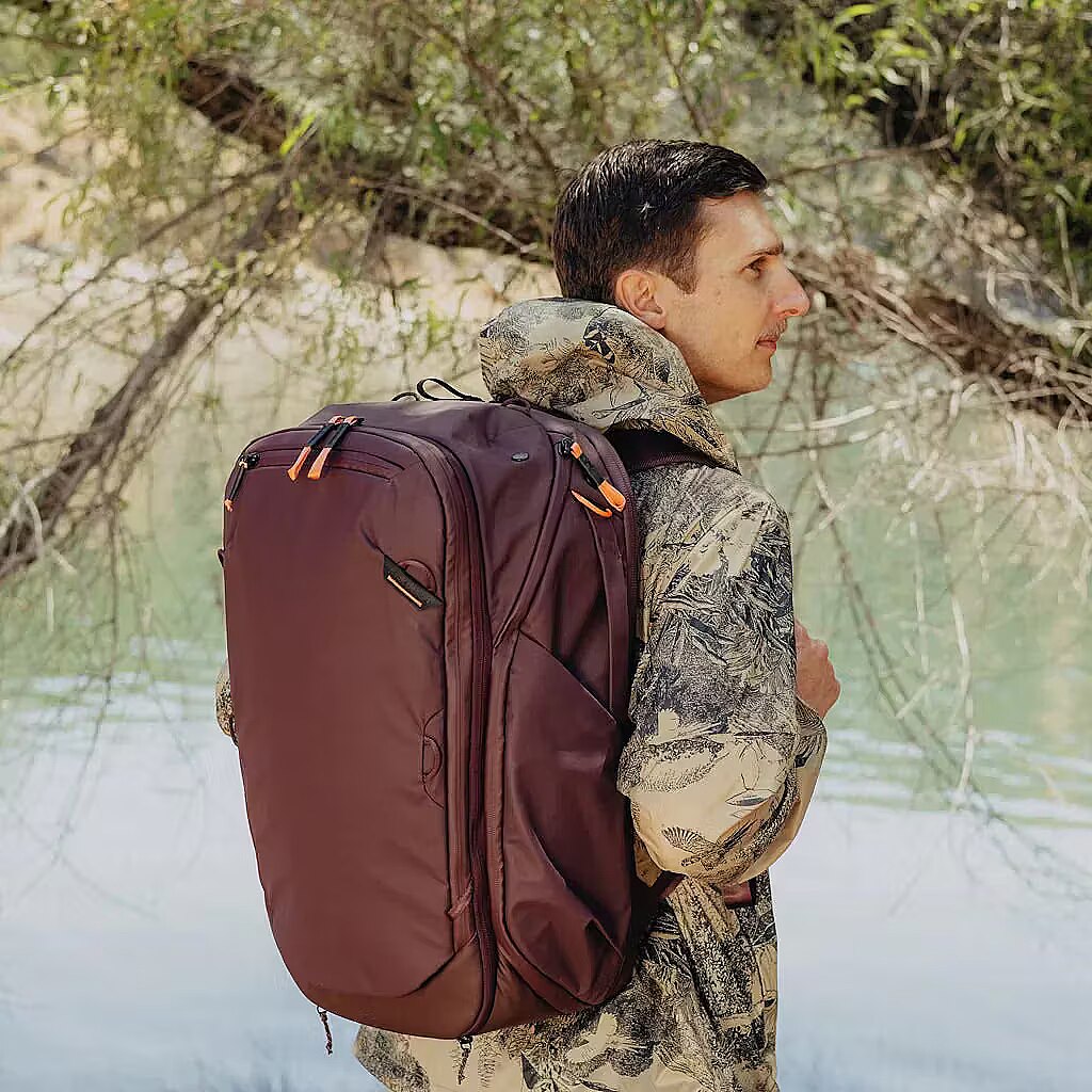 description_en - A rugged, expandable, and brilliantly accessible carry-on travel backpack driven by a simple truth: No Two Trips The Same™. Features top, side, front and rear access via weatherproof #8 and #10 UltraZips, which can withstand decades of use thanks to their proprietary abrasion-resistant thread. Meets international carry-on size requirements, but expands to be a 45L gear-hauler and collapses to be a 35L day bag, making it unmatched for 1-bag travel. Quick-access pockets for keys, glasses, passport, etc. Hugely expandable side pockets for water bottles, tripods, and more. Padded laptop + tablet sleeves. Main cavity is divisible into 2 compartments via a zippered mesh sleeve. Tuck-away shoulder straps and hip belt. 360-degree grab handles. Cleverly concealed external carry straps. All packed within a sleek, weatherproof 100% recycled 400D nylon canvas shell with 900D bottom liner. Fair Trade Certified and 100% carbon neutral. The Travel Backpack 45L combines perfectly with other Peak Design Travel series bags and pouches: Camera Cube for your camera gear Tech Pouch for accessories Packing Cube for clothes Access & expansion