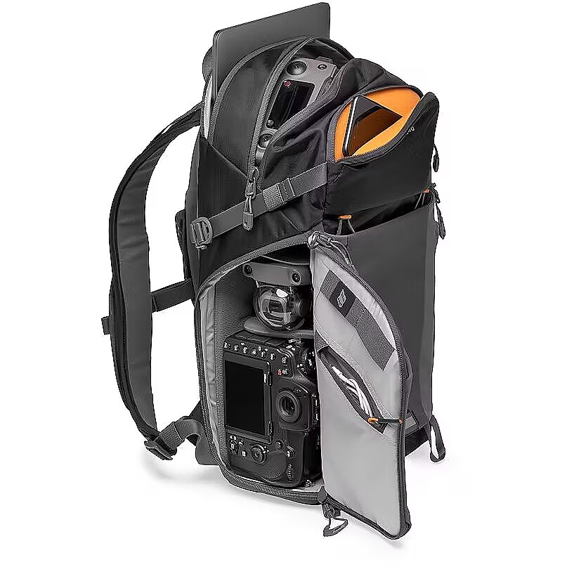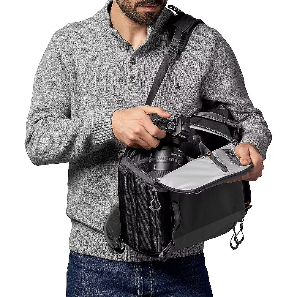 Photo Active carries what you need for each day's adventure. Whether you are heading out on an epic journey or hitting the trails for the day, there's room for all your essentials plus a 2L hydration reservoir! QuickShelf divider system opens into 3-tier shelf or folds flat Dual side access panels offer quick access to camera and gear CradleFit pocket fits 12-inch tablet or 2L hydration ActivZone ergonomic, ventilated back panel All Weather AW Cover for extra protection from the elements