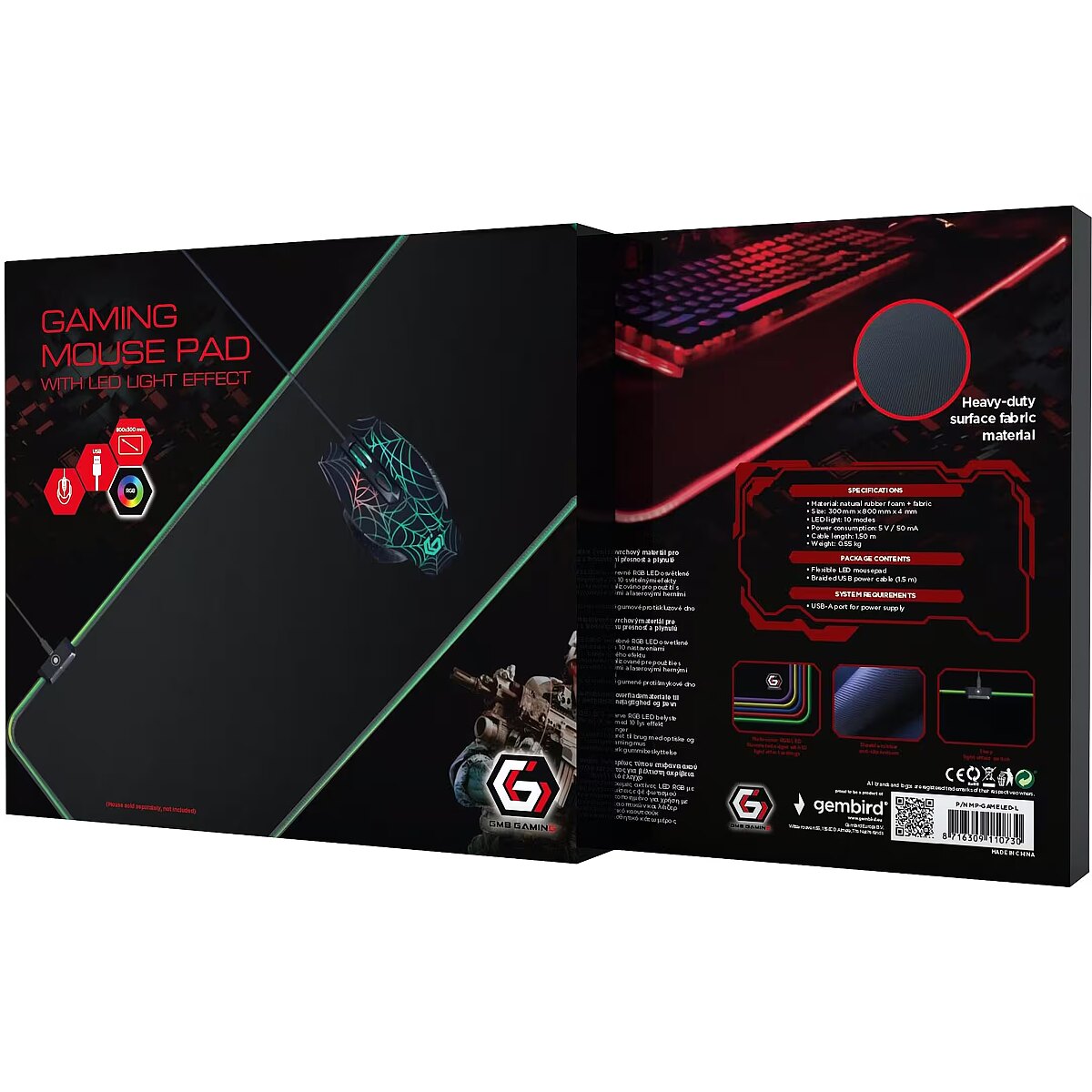 Cablexpert Gaming mouse pad with LED light effect, Large-size