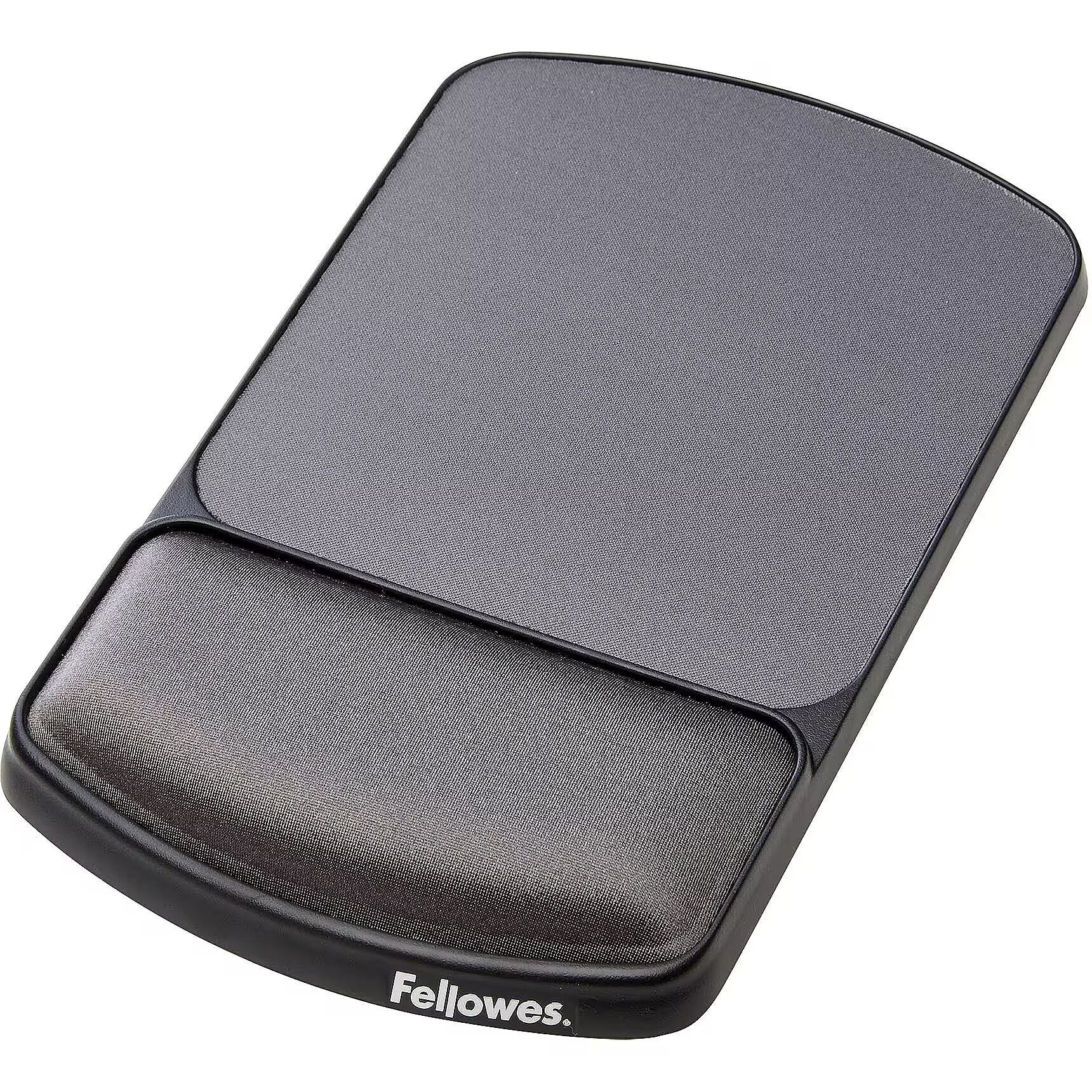 LongDesc - This Fellowes Premium gel mousepad with wrist rest allows personalised comfort as the mouse mat wrist support has the ability to conform to your wrist, which helps relieve pressure and fatigue whilst mousing. To prevent frustration in the workplace or at home, we have incorporated a non-skid rubber backing to the mousepad with wrist support which keeps it in place and prevents it from slipping around. Fellowes understand that bad working habits cause many of us physical health problems and fatigue. By using this knowledge we have created a comprehensive range of ergonomic solutions like this innovatively designed product that help you enjoy a more comfortable and productive workspace. This ergonomic mouse mat has been tested by FIRA International Ltd to comply with the ergonomic requirements set out in European Health and Safety Legislation: EN ISO 9241-5.