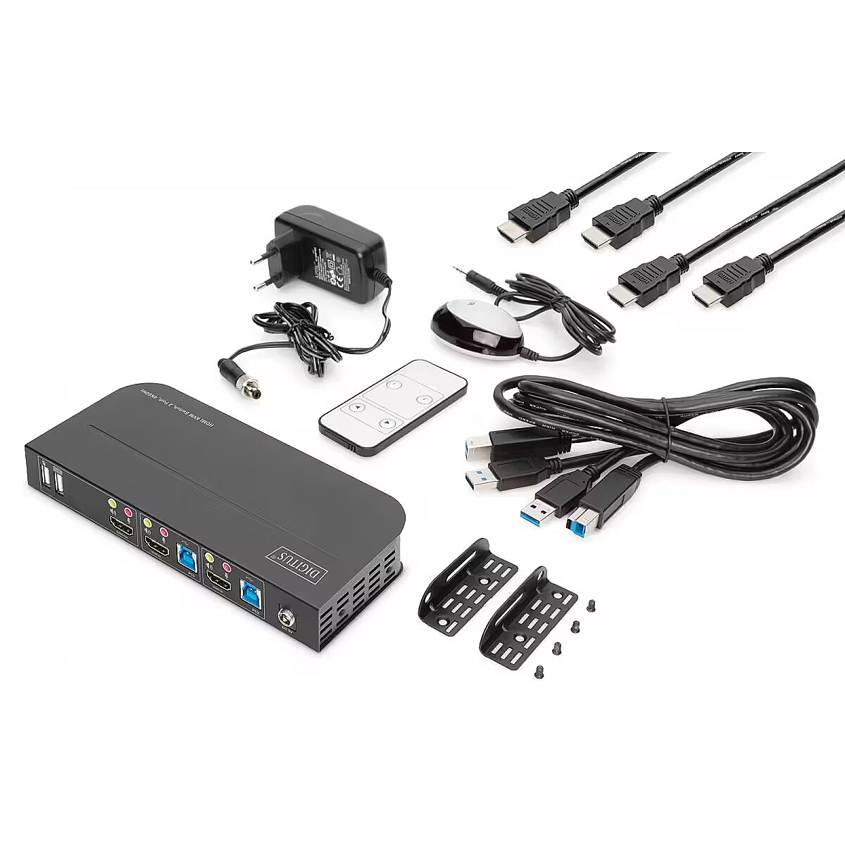 Accessories included - 1 x przełącznik KVM, 2 porty, 4K 60Hz, 2 x wejście HDMI, 1 x wyjście HDMI 1 x zasilacz sieciowy do przełącznika KVM 2 x kabel połączeniowy USB 3.0 (USB B do USB A) 2 x kabel HDMI 1 x pilot zdalnego sterowania na podczerwień 1 x odbiornik podczerwieni z kablem przyłączeniowym 2 x uchwyt montażowy do mocowania na stole/ścianie 1 x podręcznik użytkownika