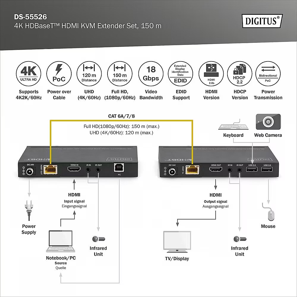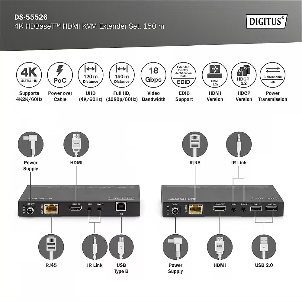 Name - Digitus | 4K HDBaseT HDMI KVM Extender Set, 150 m | DS-55526