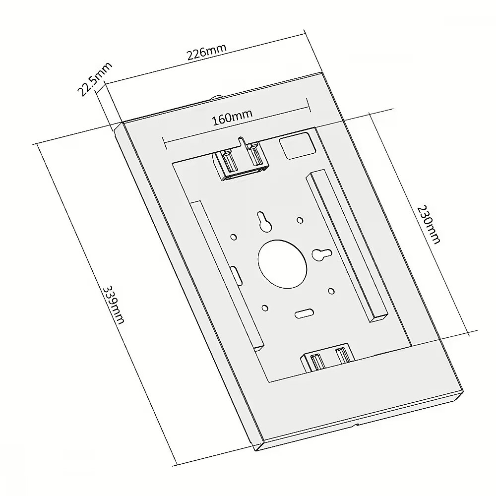 Other features - Anti-theft design with key allows you to lock your device safely Anti-slip pads inside the case prevent scratches Designed to be mounted on a wall or a holder compliant with the VESA 75x75 standard Hidden Home Button