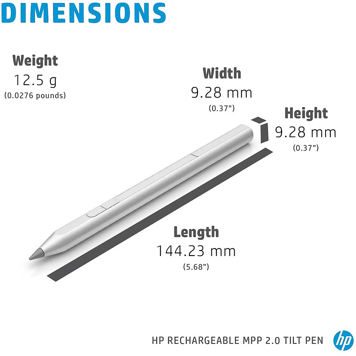 LongSummaryDescription - HP Rechargeable MPP 2.0 Tilt Pen (Black). Device compatibility: Laptop, Brand compatibility: HP, Product colour: Black. Weight: 10 g, Width: 149.5 mm, Depth: 9.5 mm. Quantity per pack: 1 pc(s), Package width: 215 mm, Package depth: 92 mm