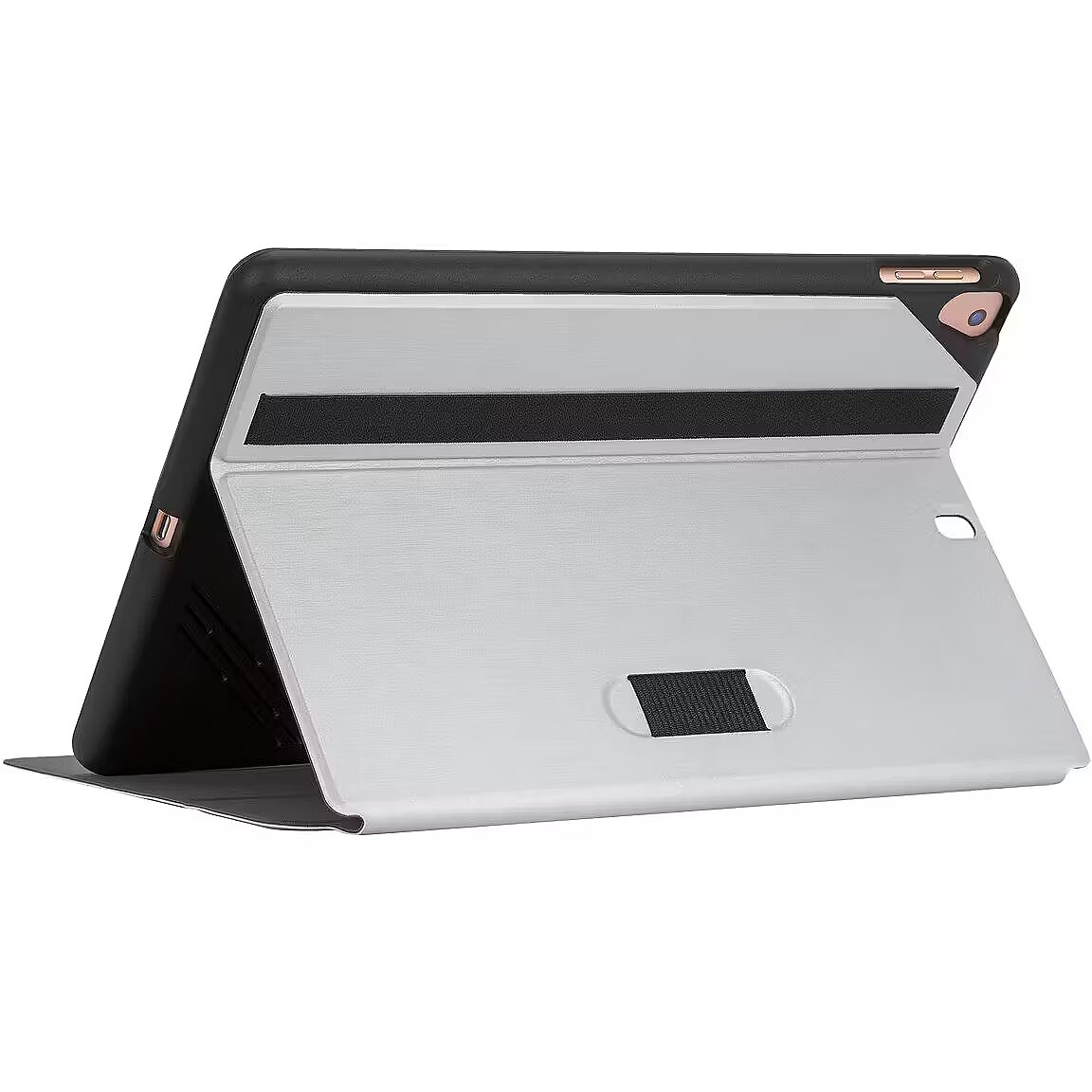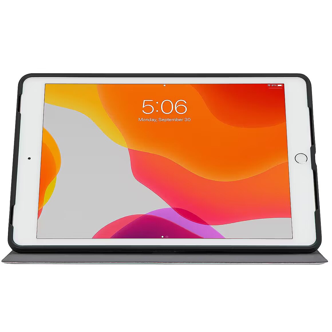 LongDesc - Wrap your iPad® (7th gen.) 10.2-inch in strong, military grade drop protection*. Engineered for durability without adding weight, the Targus Click-In™ Case features a flexible tray with wrap-around bezel and reinforced corners to ward off bumps and dings.The tray also flexes to fit iPad Air® 10.5-inch and iPad Pro® 10.5-inch for a snug, safe fit. It is structurally designed to redirect sound for enhanced audio. Precision cutouts give full access to controls, ports and cameras. Enjoy added efficiency with an integrated loop for your Apple Pencil® or stylus.The structured cover is engineered to protect, while a non-slip interior makes it easy to adjust your device into infinite viewing angles or a comfortable typing position. Altogether, it’s a superior choice for protecting your tablet.