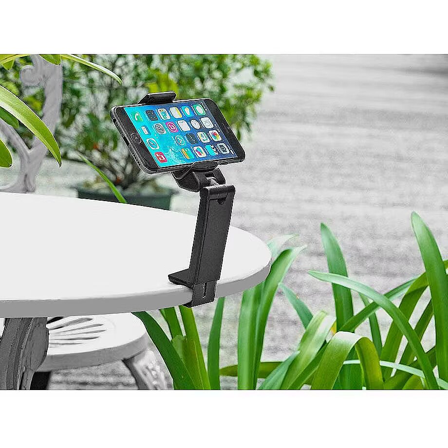 Description - Portable mobile phone holder allows convenient and easy use of the device, eg watching movies, playing games or listening to music. The bracket is compatible with all devices from 55 mm to 96 mm wide. The installation of a mobile phone is very simple, you can also adjust the angle of inclination. Due to the compact dimensions of the handle, you can always take it with you. The handle fits easily in your pants pocket or purse. The mobile phone holder does not have to be mounted because it can also be used as a stand. It fits perfectly on a shelf or table. The handle can also be used as a selfie stick. The applications are virtually unlimited. The bracket can be easily attached to the table top or can be attached to the trolley while walking. The assembly is quick and trouble-free, no tools are needed.