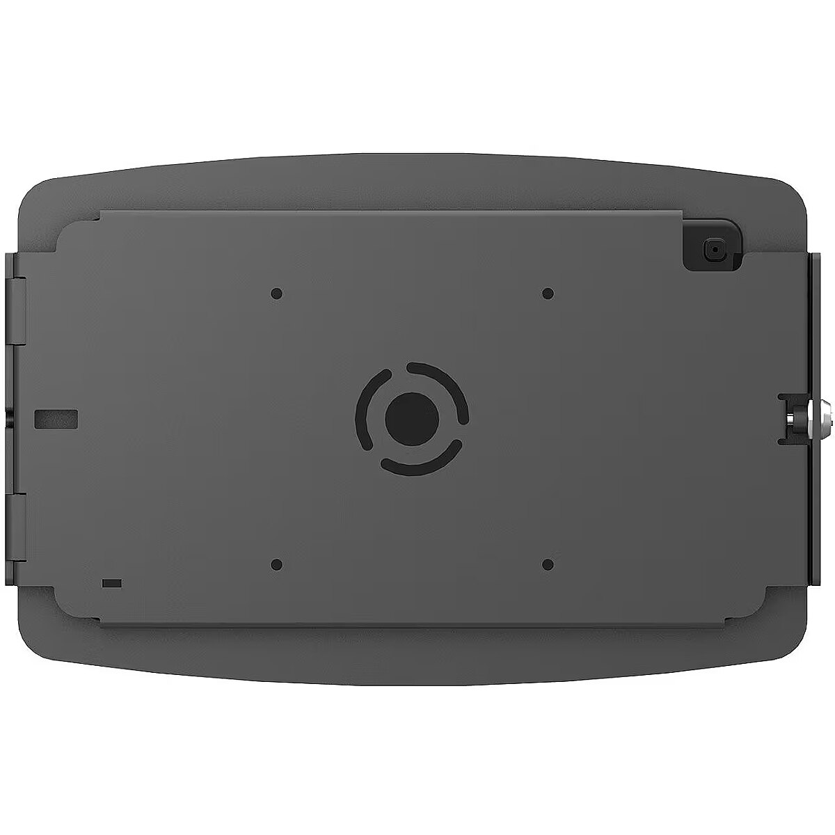 LongDesc - The Space iPad Enclosure features rounded edges and open corners for improved ventilation and allows for limited access to buttons and inputs.As with all our iPad lock and tablet lock devices, the tablet can be continuously charged while in the enclosure and have peripheral cables plugged in while mounted.Mount this enclosure flush to the wall or surface via the standard VESA pattern or pair it with one of stands for additional kiosk experiences.iPad Space Enclosure Includes:* Lockable High Grade Aluminum Enclosure* VESA Mount Pattern on Back of Enclosure* 2 Enclosure Keys