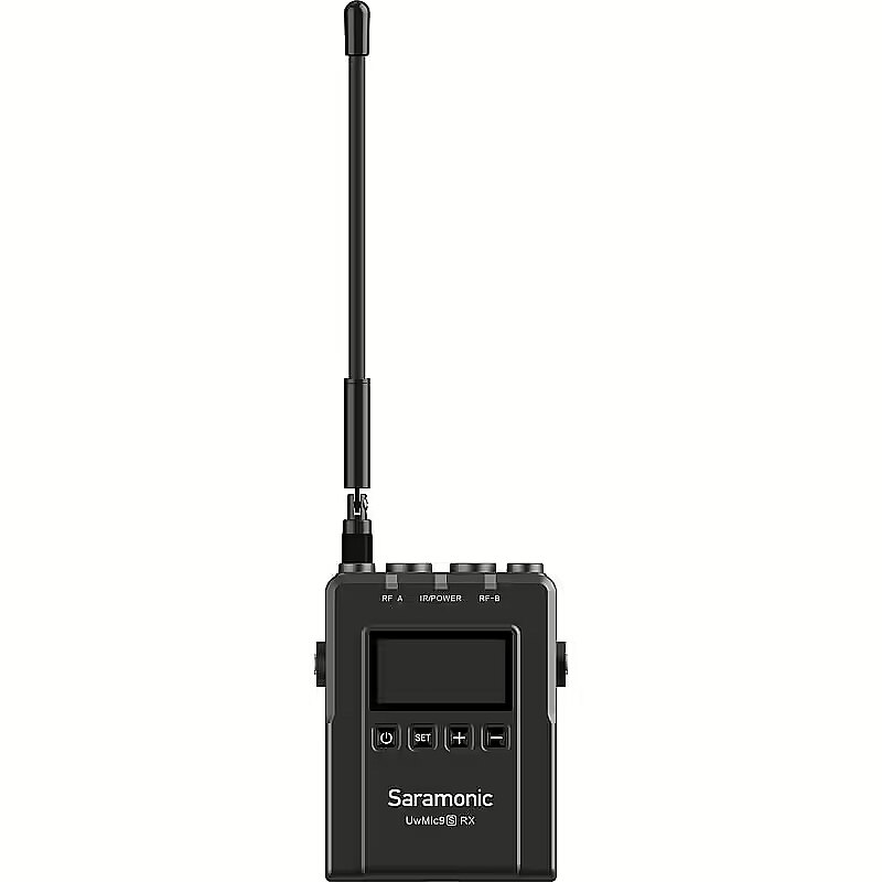 Saramonic UwMic9s RX on kaamerasse paigaldatav kahekanaliline UHF juhtmeta vastuvõtja. Sellel on lai RF-ribalaius, suure kontrastsusega OLED-ekraan, infrapuna ja sünkroniseerimine saatja ja vastuvõtja vahel. Parema vastuvõtu tagamiseks saab kahte eemaldatavat antenni 360° pöörata. Vastuvõtja väljundit saab vahetada mono- ja stereorežiimi vahel. TX9S saatja