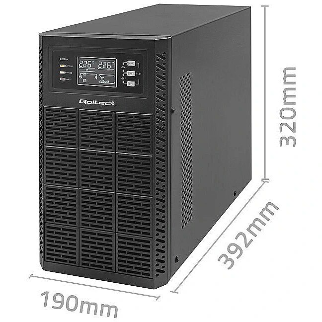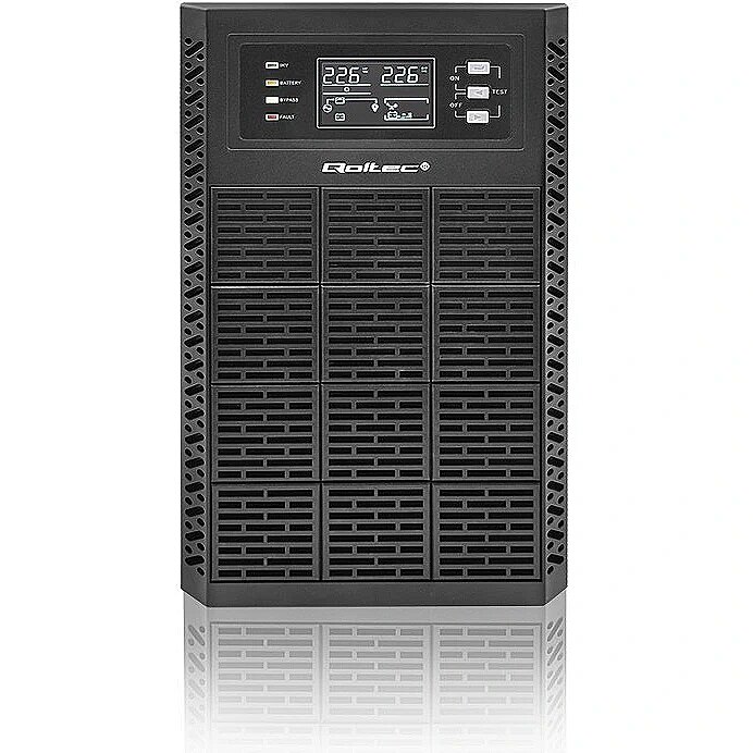 Qoltec  UPS units offer stable interference-free pure sine wave power. It's complete protection for your devices, thanks to the double conversion, which first converts the AC of the mains supply to DC and then to AC, ensuring the highest level of power quality and protecting against potential mains disturbances such as voltage drops, power outages, surges and failures.