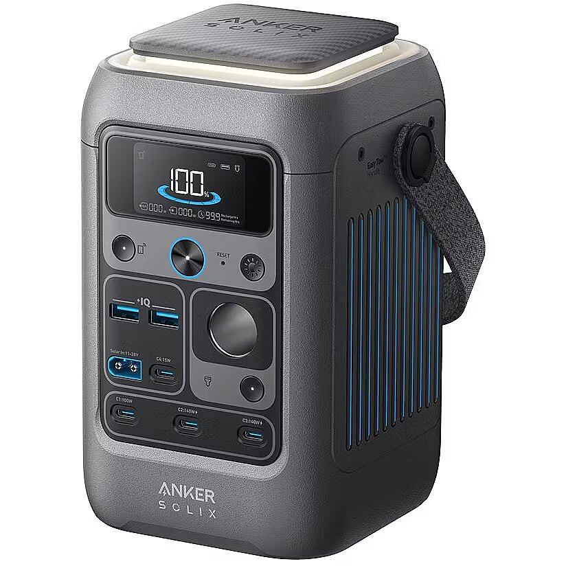 Anker SOLIX C300 DC nodrošina 300 W jaudu un 288 Wh kapacitāti, padarot to ideāli piemērotu klēpjdatoru, viedtālruņu un nelielu ierīču uzlādei kempingā, ceļojumos vai kā rezerves barošanas avotu mājās. Īpaši ātra uzlāde ar divām 140 W USB-C pieslēgvietām