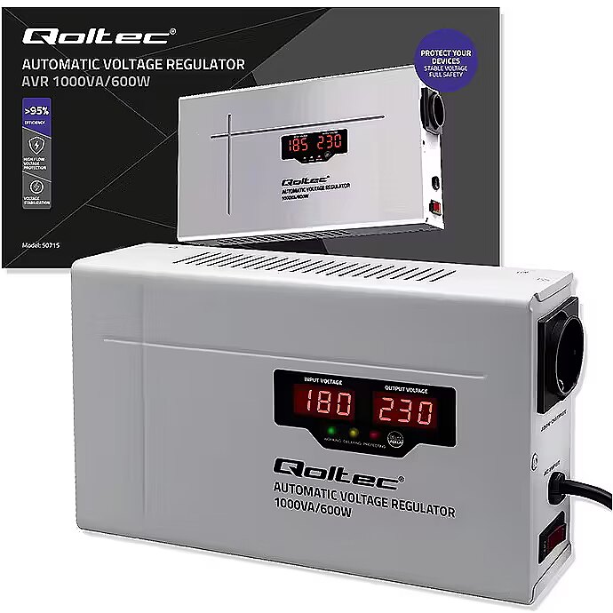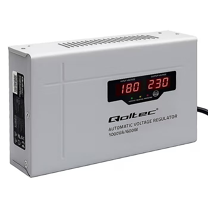 Ensure a stable and safe power supply for your home and office devices and full protection of your electronic equipment against the effects of power surges, overloads and short circuits. The Qoltec AVR 1000VA / 600W automatic voltage stabiliser is a reliable solution that protects your equipment against the effects of voltage fluctuations, overloads and short circuits. Thanks to precise input voltage regulation, the device ensures optimal operating conditions for computers, televisions, audio equipment, refrigerators, pumps and many other electrical appliances.