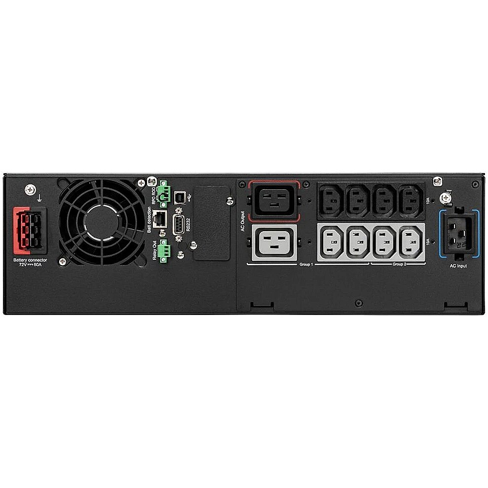 Special functions - Automatyczna regulacja napięcia (AVR) Wydajność energetyczna, redukcja kosztów energii i chłodzenia Zapewnia czystą falę sinusoidalną Zapewnia większą moc rzeczywistą (W), aby chronić więcej urządzeń dzięki współczynnikowi mocy Unity (VA=W) Wyświetlacz LCD do wyświetlania stanu w czasie rzeczywistym i pomiary Długi czas podtrzymania z maksymalnie 4 opcjonalnymi EBM Licznik zużycia energii (do zarządzanych grup gniazdek) Uniwersalny produkt do instalacji w szafie lub wieży 1 gniazdo na opcjonalną kartę com (karta zarządzania siecią, karta przekaźnikowa lub sieć i przemysł karty) Zgodny ze środowiskami wirtualnymi (VMware, Hyper-V, Citrix Xen, Redhat) 1 port USB + 1 port szeregowy