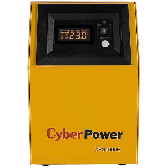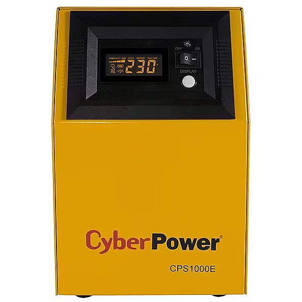 LongSummaryDescription - CyberPower CPS1000E. UPS topology: Double-conversion (Online), Output power capacity: 1 kVA, Output power: 700 W. AC outlet types: Type F, AC outlets quantity: 2 AC outlet(s). Battery technology: Sealed Lead Acid (VRLA), Battery capacity: 200 Ah, Battery voltage: 12 V. Form factor: Tower, Product colour: Yellow, Display type: LCD. Certification: CE