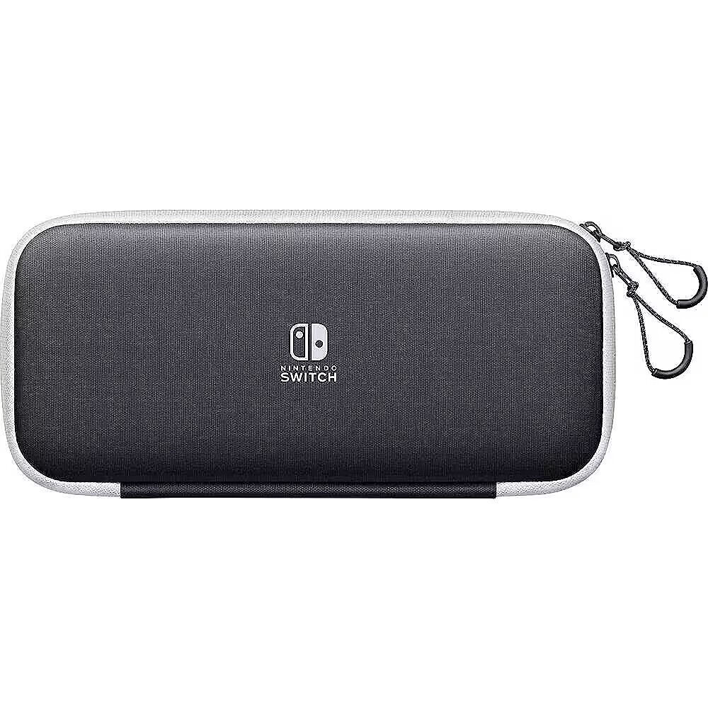 ShortSummaryDescription - Nintendo Switch OLED Carrying Case & Screen Protector, Folio, Nintendo, Black, White, Polyester, Nintendo Switch OLED, Scratch resistant, Shock resistant