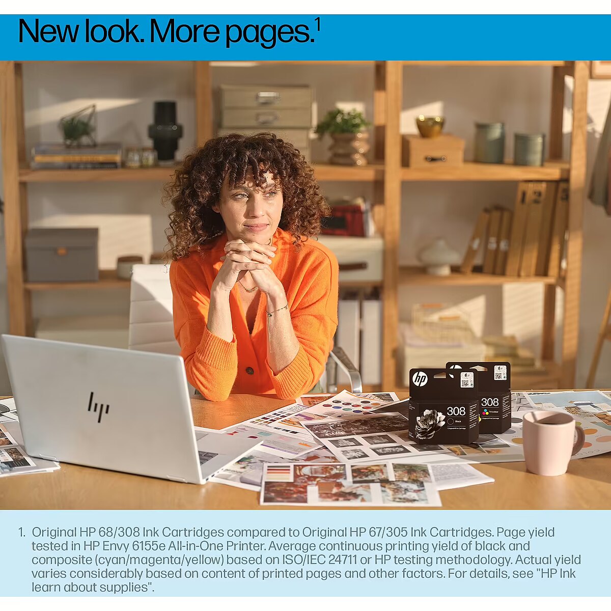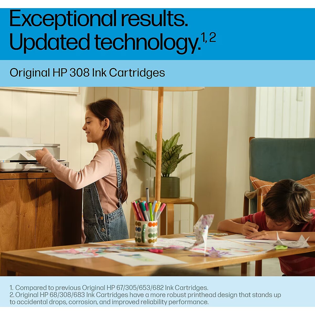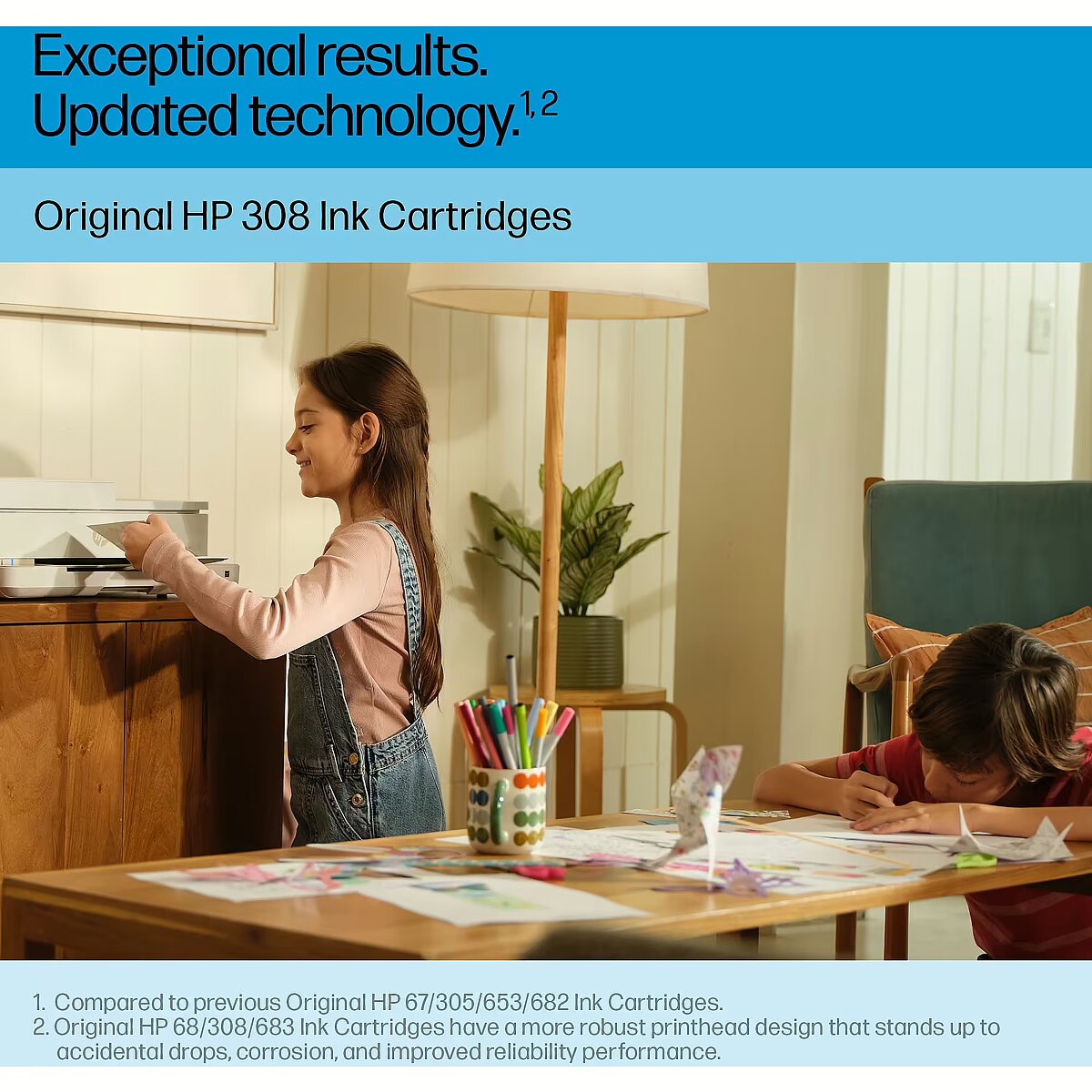 Features - Compatibility - HP 308 ink cartridge works with: HP DeskJet 2900, 4300 HP Envy 6110e, 6120e, 6122e, 6130e, 6132e, 6520e, 6530e, 6532e, 6558e, Envy 6100, Envy 6165e, Envy 6500