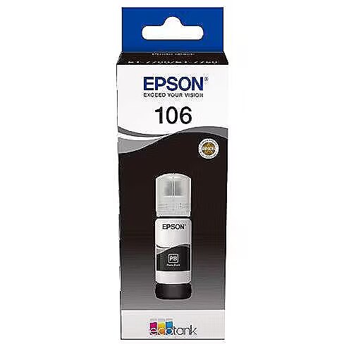 LongSummaryDescription - Epson 106 EcoTank Photo Black ink bottle. Colour ink type: Pigment-based ink, Black ink volume: 70 ml, Printing colours: Photo black, Quantity per pack: 1 pc(s)