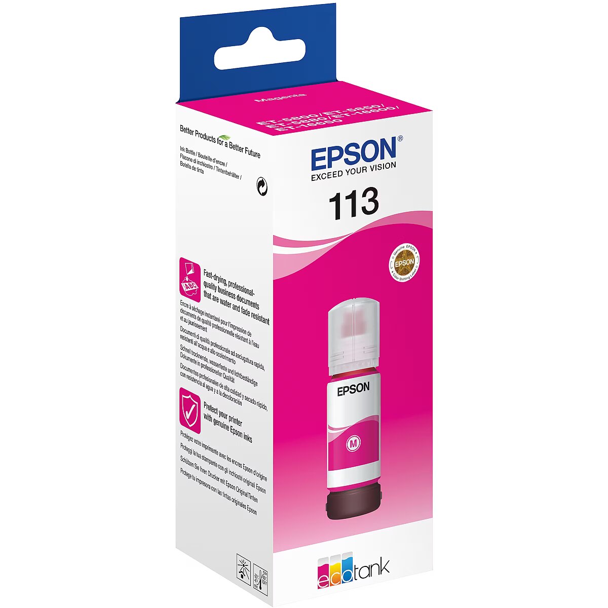 LongSummaryDescription - Epson 113 EcoTank. Type: Original, Printing colours: Magenta, Brand compatibility: Epson. Quantity per pack: 1 pc(s), Package width: 59 mm, Package depth: 175 mm. Master (outer) case length: 480 mm, Master (outer) case width: 310 mm, Master (outer) case height: 150 mm
