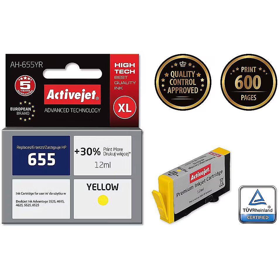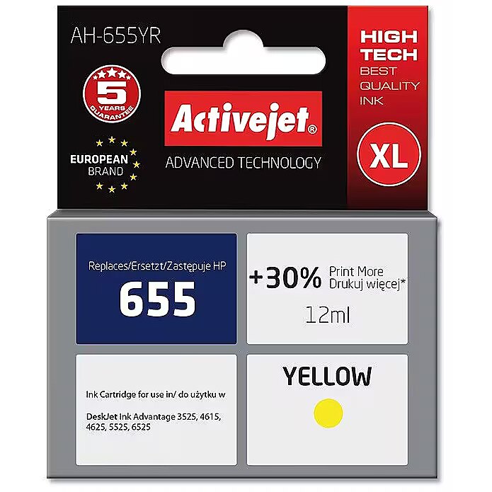 productName - Activejet AH-655YR Ink (replacement for HP 655 CZ112AE; Premium; 12 ml; yellow)
